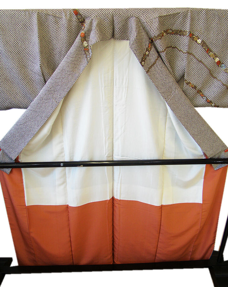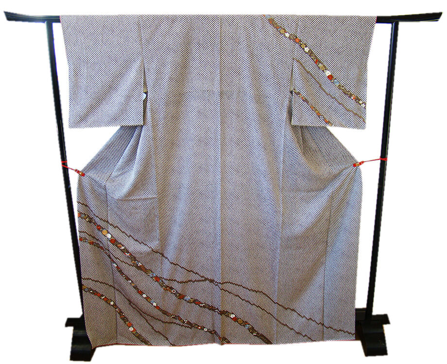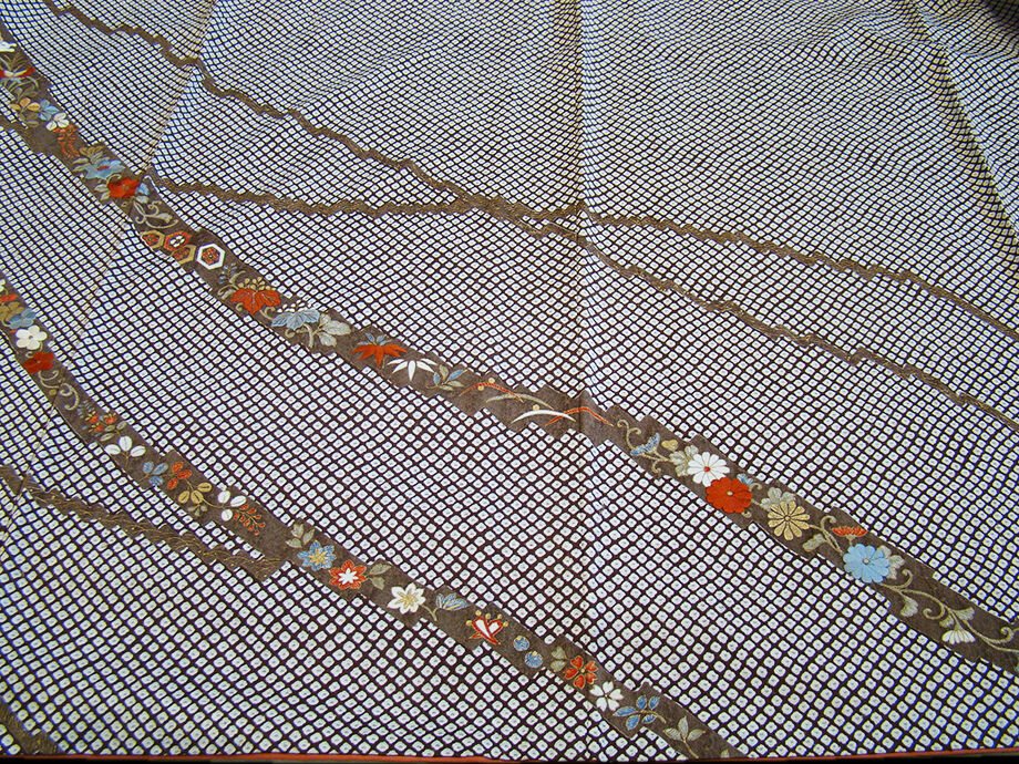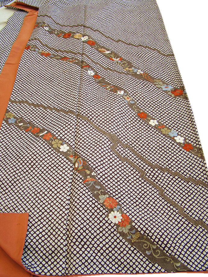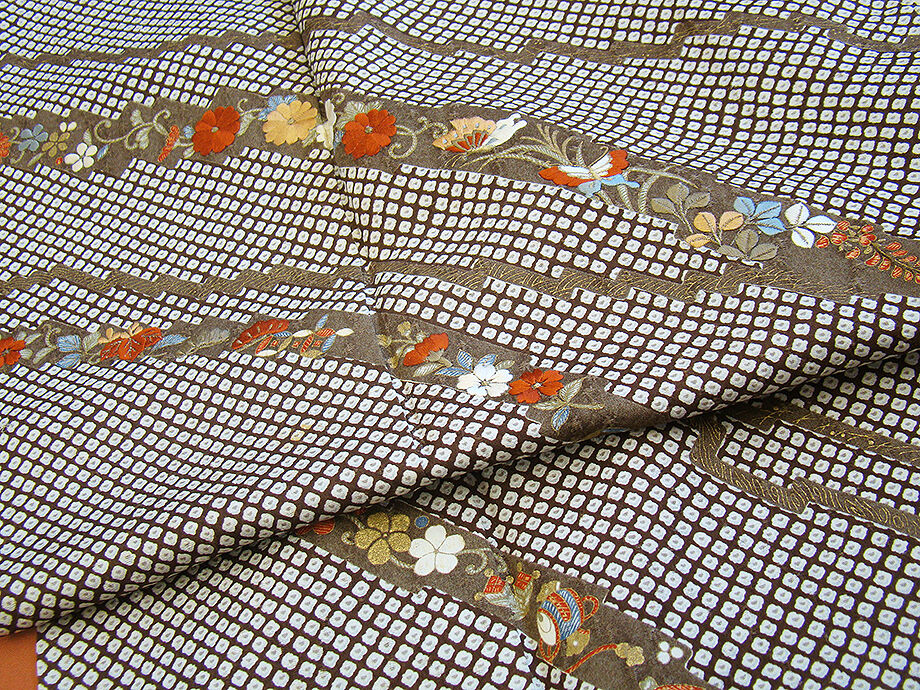 | 商品説明 | こちらのお品は「袷」ですので10月から5月までお召頂ければと思います。 しなやかで柔らかな手触り良いさらりとした滑らかなちりめん地の生地、 こげ茶色地に象牙色の鹿の子絞り柄、花草柄の染柄に刺繍入り、 八掛は土色(正絹)、幅広い年代の方にお召頂けます。 |