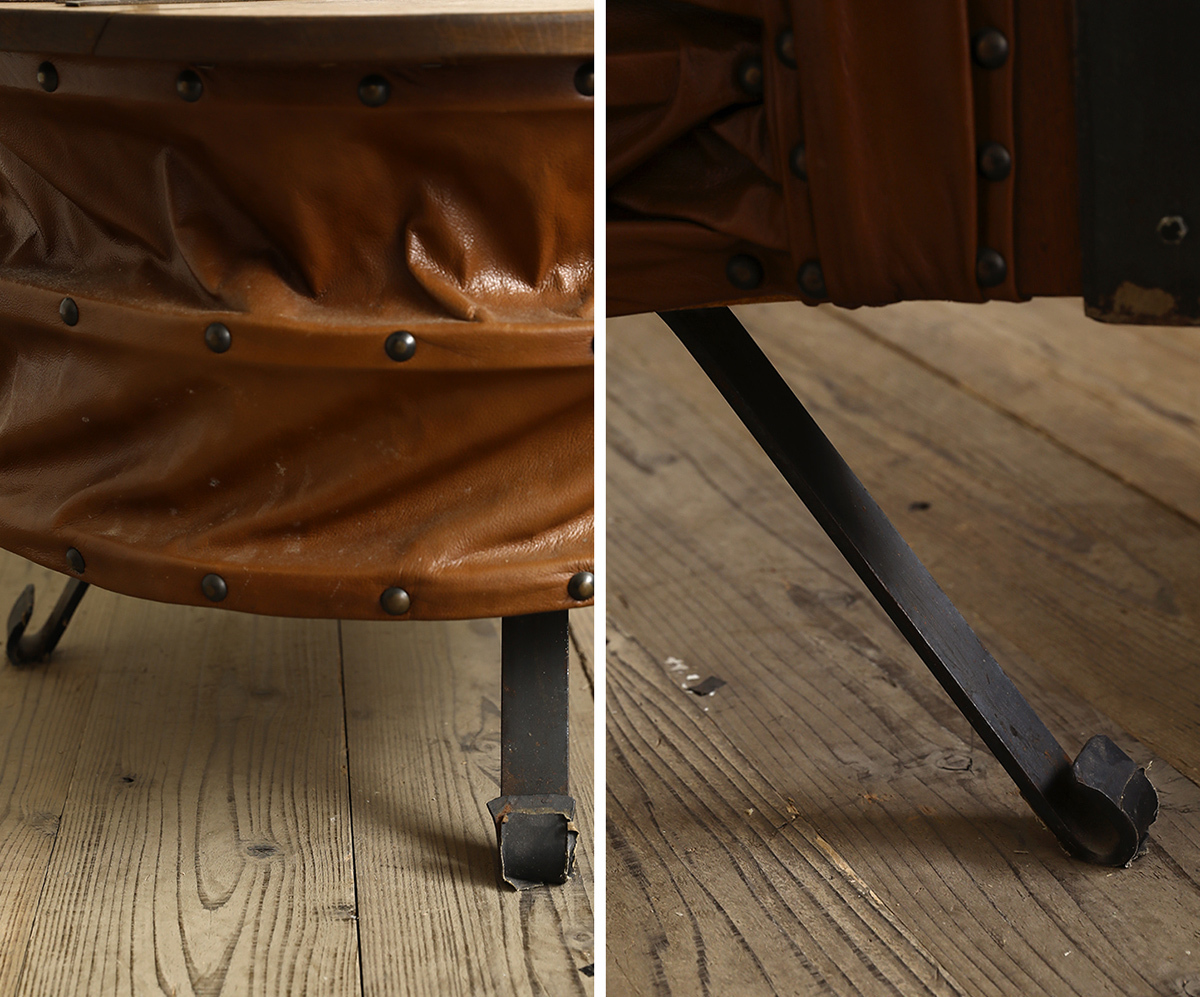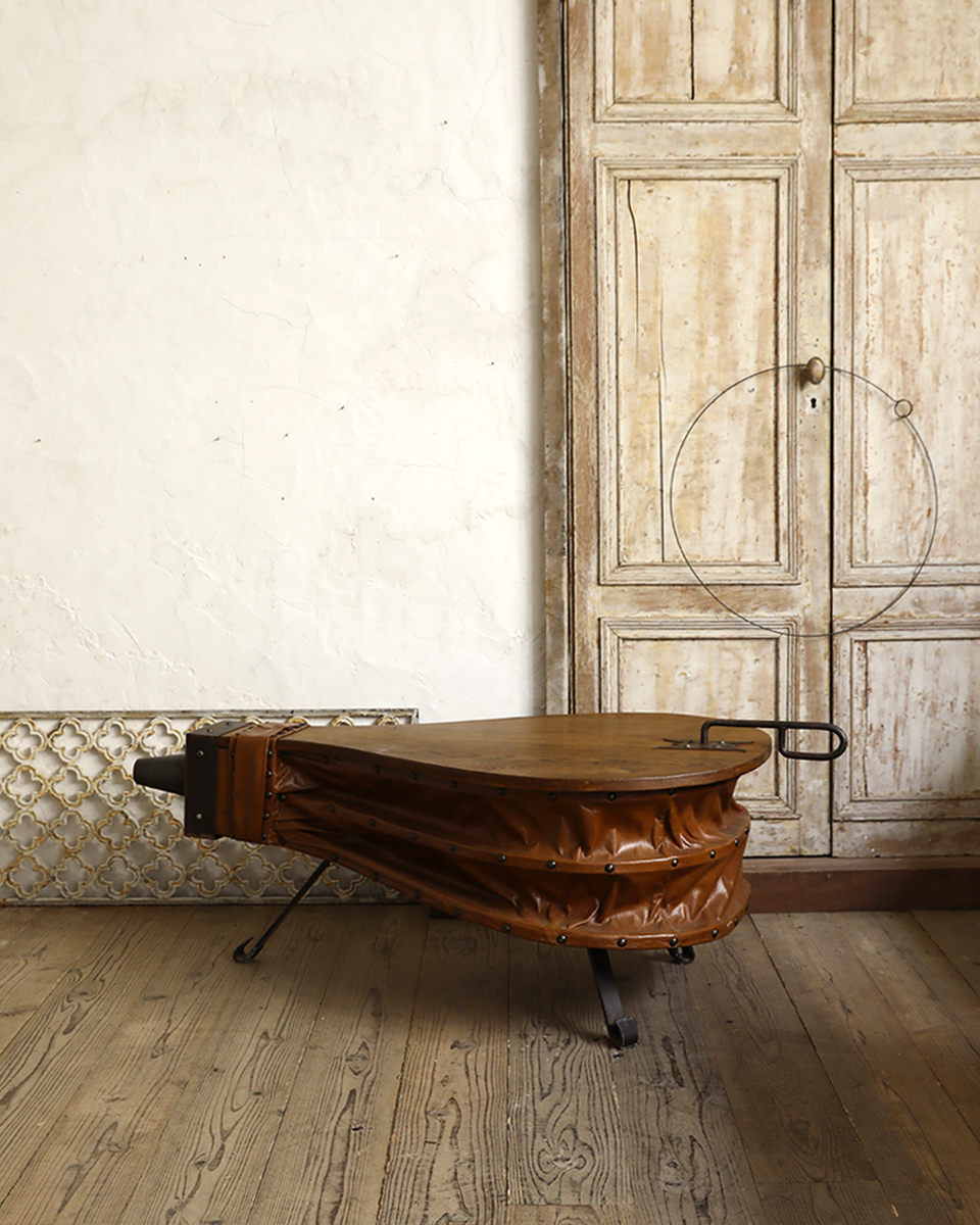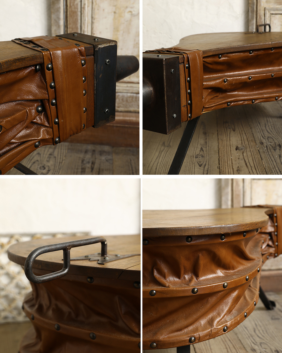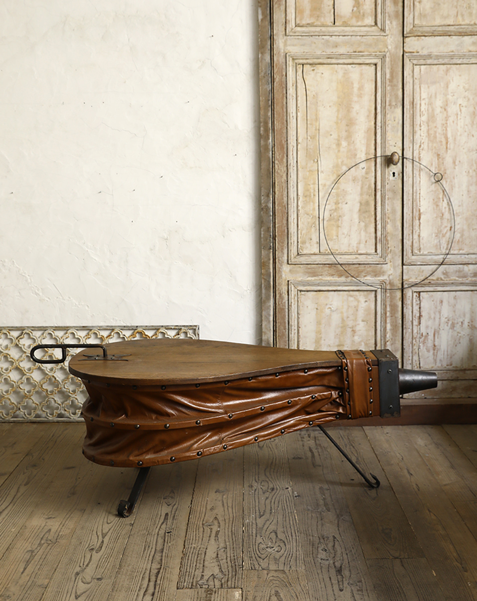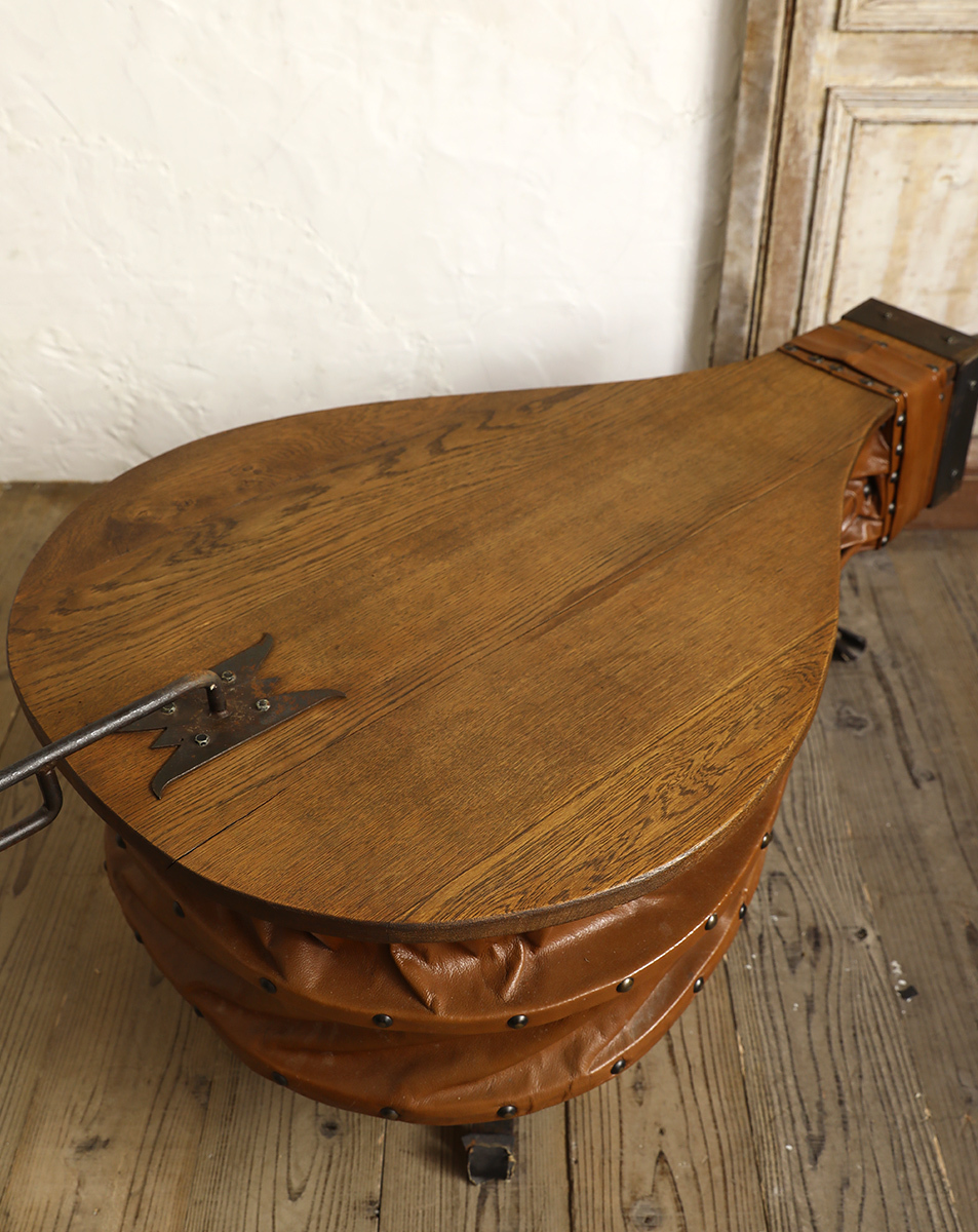 From : France フイゴのデザインを利用して造られたソファーテーブル。 脚部や持ち手、吹き口にはアイアン素材が配われ、どっしりとした重厚感を纏った姿が目を惹くひと品です。 またオーク材のドロップ型の天板が目新しく、唯一無二の異彩を放つ存在感で印象的な空間を創ります。安定感がございますので、センターに設置して休憩所などの腰掛け用ベンチとしてご使用いただくのもお勧めです。 当時は鍛冶屋の『神』といわれたフイゴは、火を絶やさず、高温を保つための必需品として大切に利用されてきました。 商品はアンティーク品のため、お写真では伝わり難い色褪せや色むら、小傷や凹み傷、歪みや反りなどがございます。 追加のお写真をご希望の方はお気軽にお問合せくださいませ。 商品はメンテナンスを施してからの発送となります。メンテナンス時にお写真にはない修復跡が残る可能性もございますので、予めご了承くださいませ。 またお届けまでに7日間ほどお時間をいただく場合がございます。お急ぎの方はお気軽にご相談くださいませ。