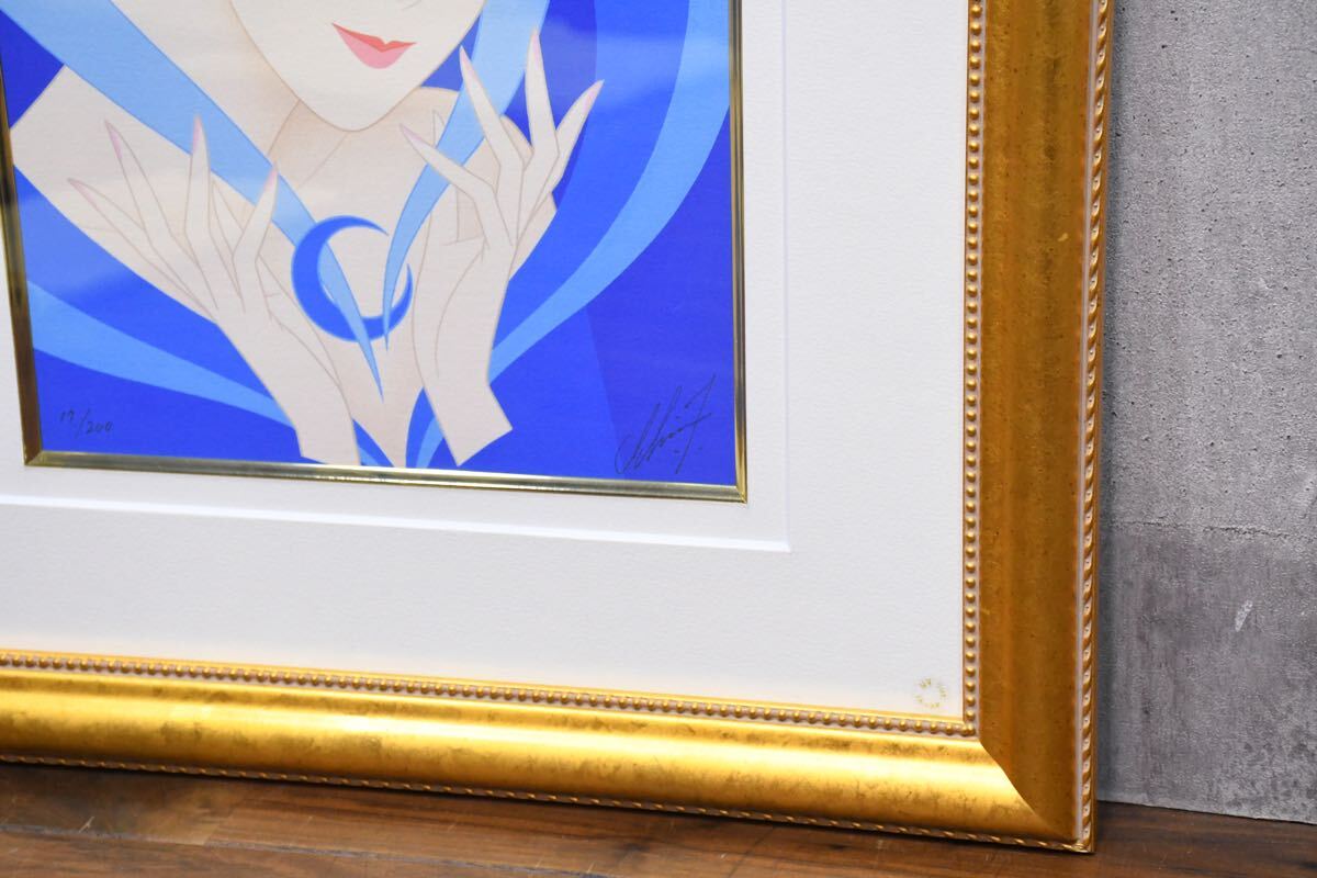 真作 鶴田一郎 知の月 エディション17/200 ジークレー 額装 ゴールドフレーム 2009年 裏に直筆サイン有りの出品です。