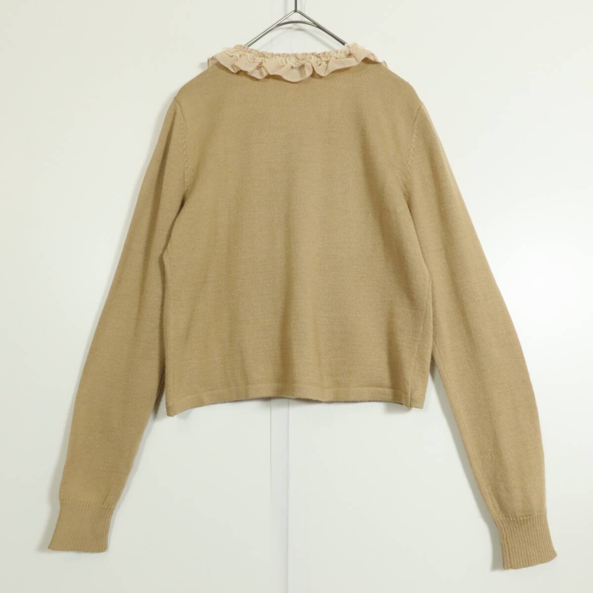 | 商品説明 | 【実寸約】肩幅35袖丈60バスト80着丈43(cm) 【サイズ表記】 2 【素材】アクリル60毛40 【状態】普通の使用感のあるお品物 毛羽立ち感あり 【デザイン】薄茶系 薄手/無地・段々フリル&リボン&レース付き フロントは上部にボタン2つ付き |