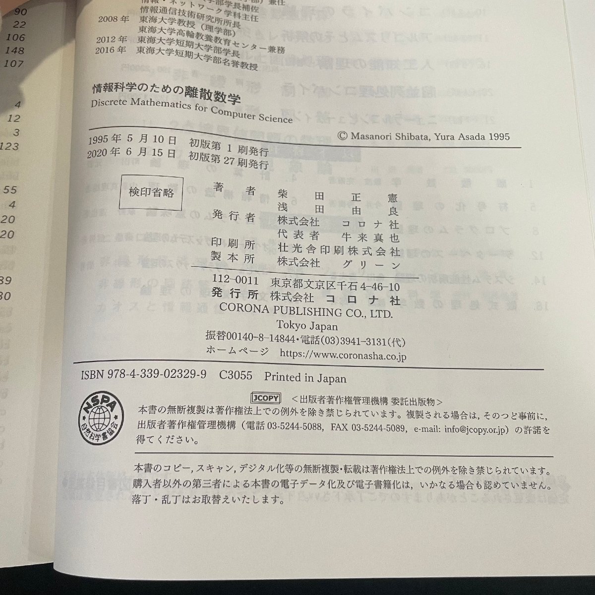 中古●コロナ社●情報科学のための離散数学 柴田正憲 浅田由良著 参考書 [浏览原始页面]