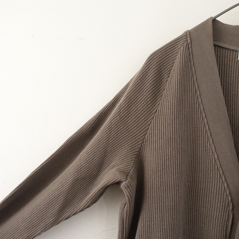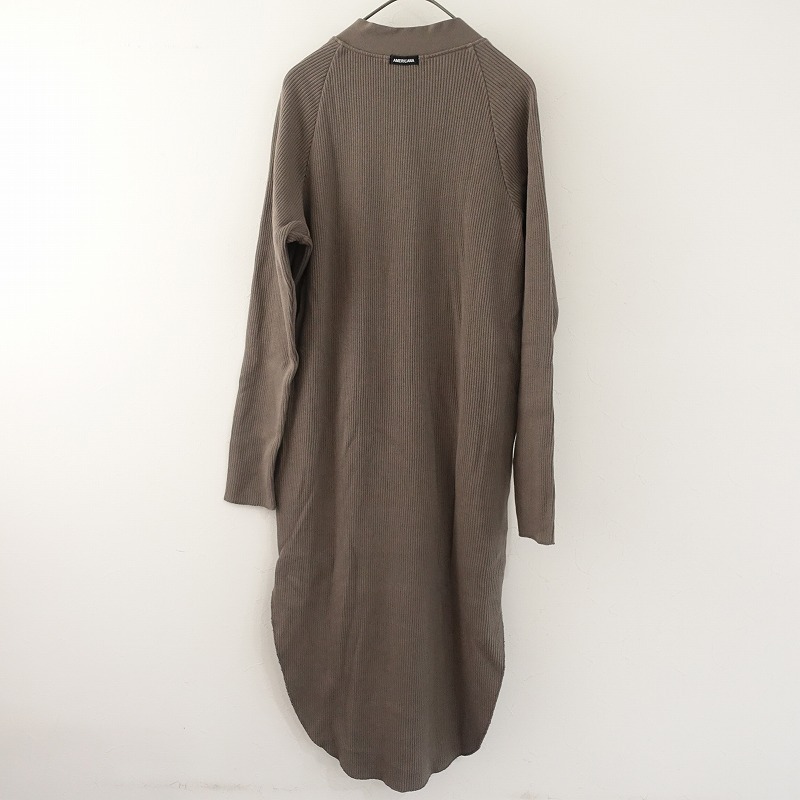 | 2024年コレクション Americanaのスキニーロングカーディガンです。カラーはグレーブラウンです。コットンの中厚アゼニットを使用。Vネックにラグランスリーブ仕様のロングカーディガンです。裾サイドはスリット入りです。両腰にシームポケットがございます。袖口と裾は裁ち切りにロックミシン始末です。左胸にワンポイント刺しゅう、後ろネックにブランドタグがあしらわれております。定価(メーカー希望小売価格)20,900円の商品です。 |