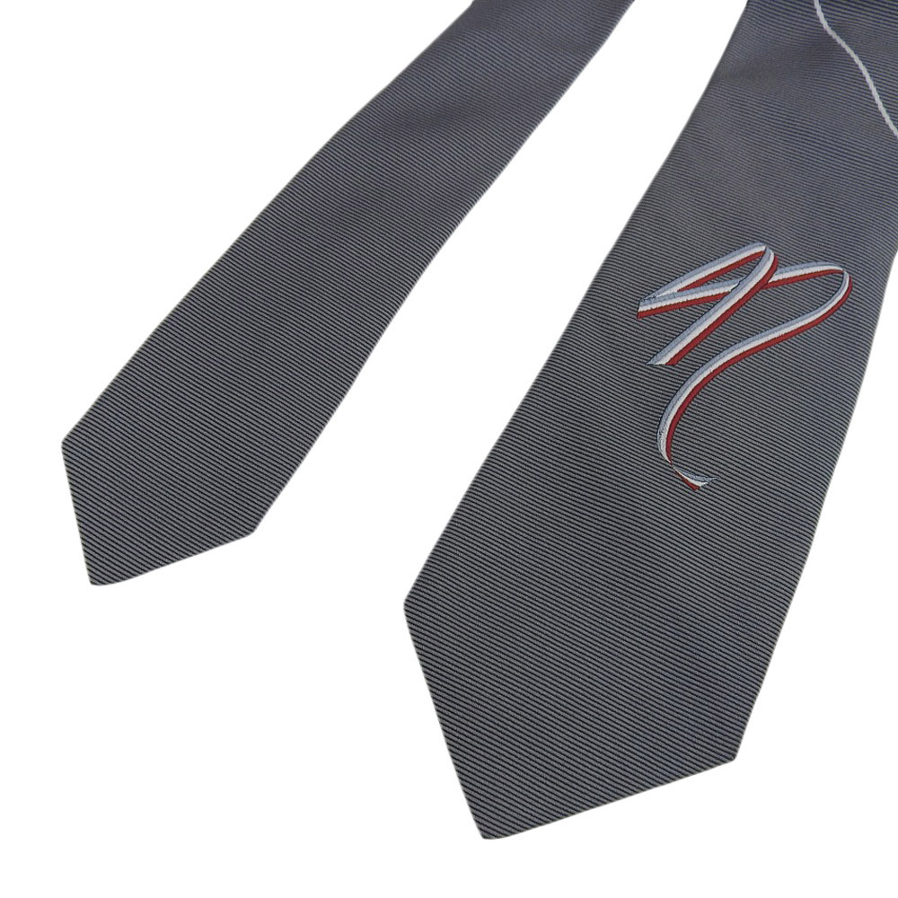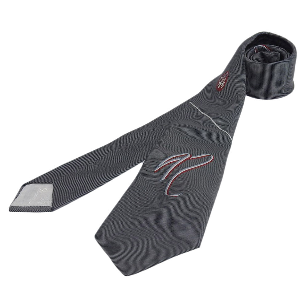 | ドミニクフランス スリークラウン リボン エンブレム柄 刺繍 シルク100% ネクタイ 剣先 8cm メンズ グレー |