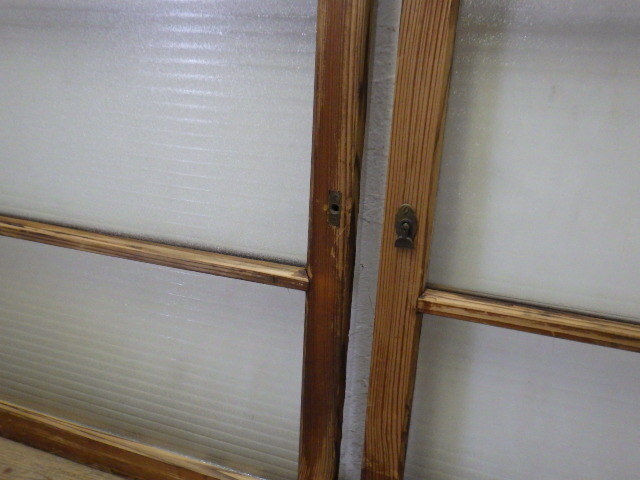 商品情報 | ■商品詳細■ レトロな古い木枠引き戸、2枚セットです。 長年使い込まれた味わいのある品です。 ガラスは、透明ガラスと銀モールガラスを使用しています。 一般のご家庭はもちろん、レトロな店舗什器にもお勧めです。 経年の傷や欠け、染み等がありますが、使用には問題ありません。 ガラスにヒビや割れはありません。 古い物とご理解いただければ幸いです。 ◆別カテゴリーにて同じデザインの品(S956)を出品していますので まとめてご希望の場合は、ストア内検索で上記の管理番号を検索して頂ければと思います。 売買済みの場合はご了承下さい。 ご不明な点などありましたら、質問欄にてお願いします。 ■サイズ■ 全体(最大値) (H 93cm×W 88,5cm×D 3cm)×2枚 竪框 4cm 多少の誤差はご了承下さい。 |