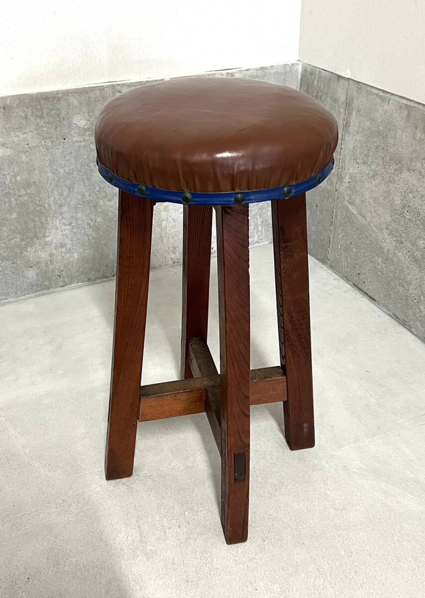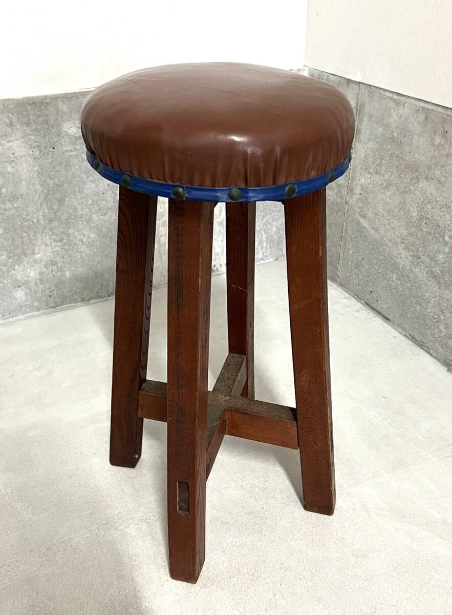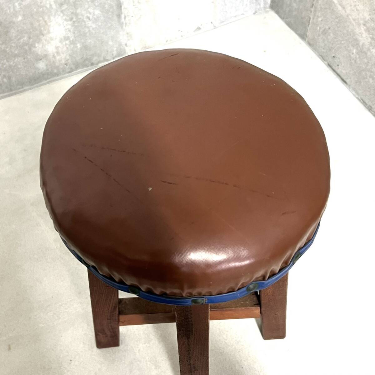 商品名 | ■【 昭和 レトロ 】木製 クッション 付 丸椅子 スツール 丸イス 椅子 チェア 花台 古道具 茶系 ブラウン系 インテリア 家具 高さ:約50cm |