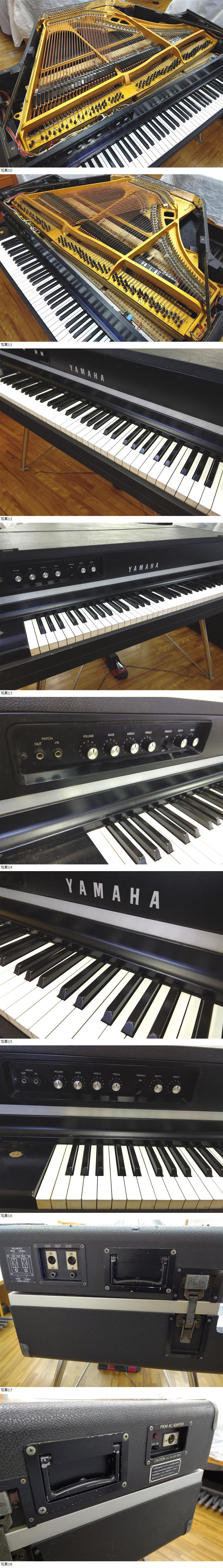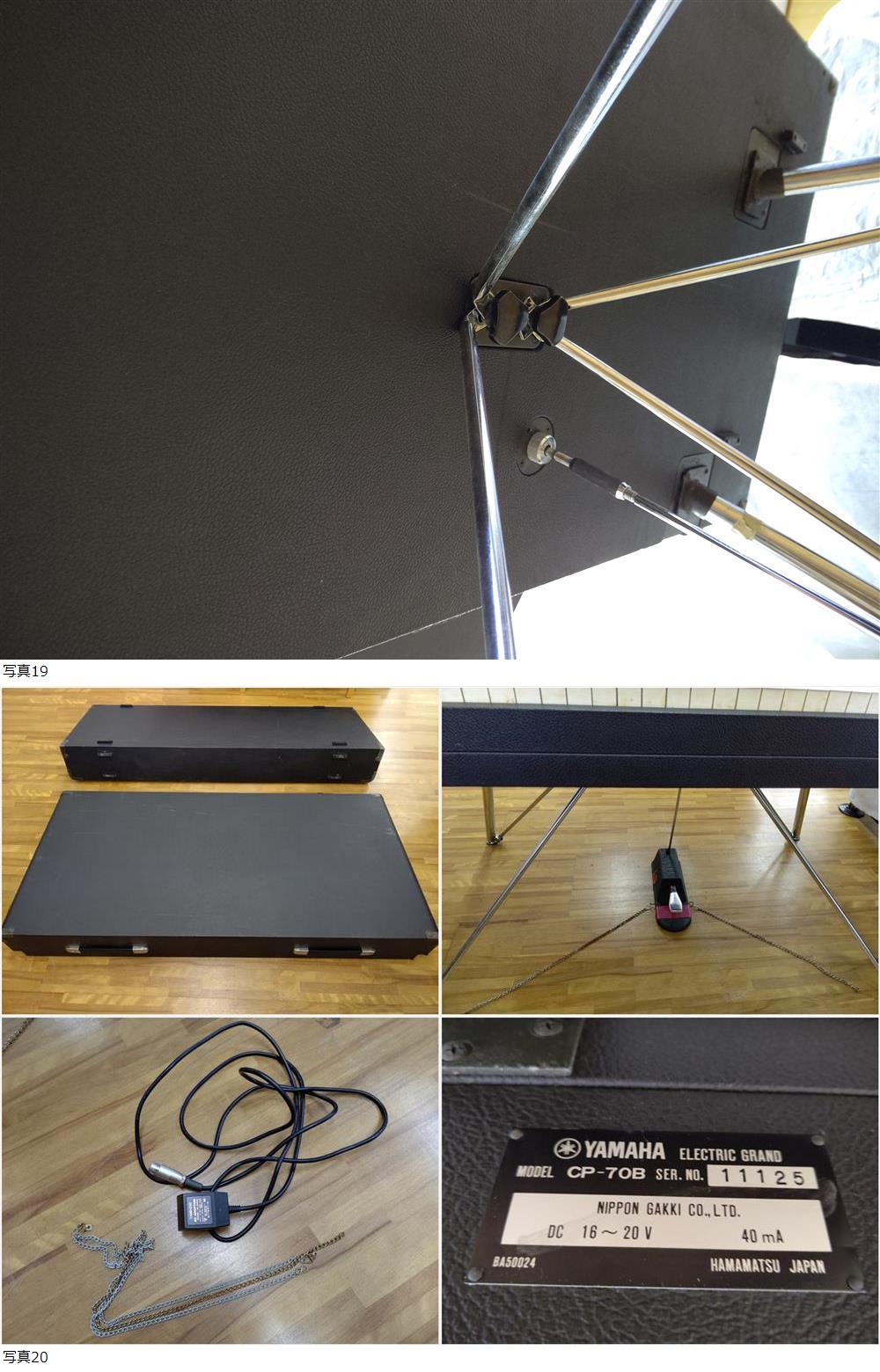 | ブランド ヤマハ YAMAHA 品番 CP-70B ♯11125 サイズ H 946.5mm×W 1,296mm×D 1,045mm WT 109kg ◇現状品・未整備・未調律(数か所、弦に錆が見られます) ◇通電確認済 ◇全鍵アコースティック発音/止音確認済 ◇全鍵アンプ発音確認済(LR共)アンバランスのみ、バランスは機材が無いので確認できていません。 ◇ダンパーペダルを固定する鎖が切れています(切れたものは付属します) ◇白鍵木口が変色しています。 ※直接引き取り、もしくは購入者様で運送業者を手配ください。トラブル防止のため引き取り時の動作確認をお願いします。尚お引き取り以降、全ての不具合は免責とさせていただきます。(ピアノは和歌山市北東部の工房に保管しています) 【付属品】 ◇ ダンパーペダル ◇ ACアダプター ◇ ケース外蓋 ×2 ※椅子は付属していませんが、ご希望の方にはピアノ用ベンチ型をさしあげます。 | ||