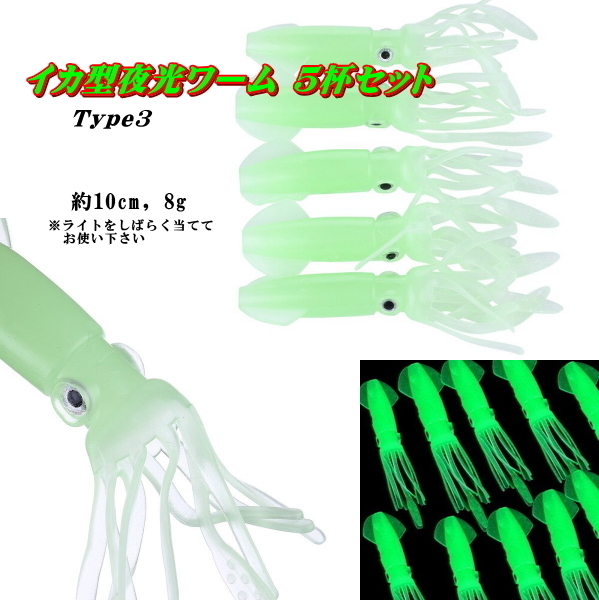 | ★イカ型夜光ワーム★ 5杯セット | ||||||||||||||||||||