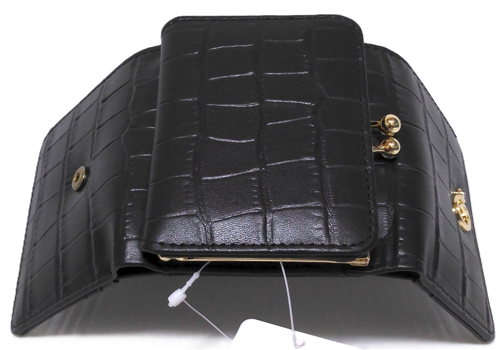 | 商品情報 | 未使用品 素材 / 仕様 【表素材】牛革、合皮【裏素材】ポリエステル 開閉方法:スナップボタン式 内側:カードポケット×7 札入れ×1 外側:口金式中仕切り付き小銭入れ×1 サイズ 幅:10cm×高さ:8.5cm×マチ:3.5cm |