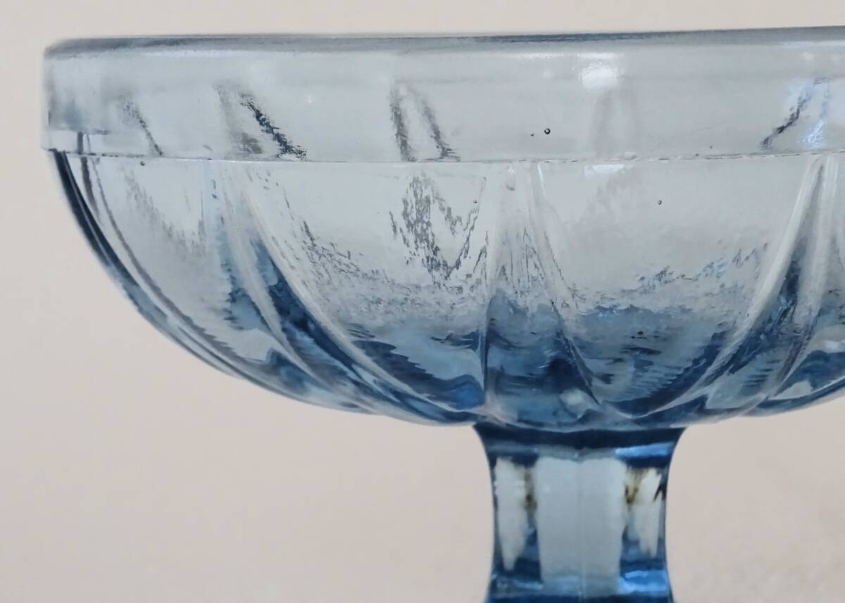 サイズ・直径:10cm 高さ:6.5cmアクセスいただきありがとうございます。この品は氷コップです。水色ガラスに陰刻で太陽のような模様を描いています。背の低い幅広な印象の品です。普段使いにお薦めです。経年による使用感があるので、写真を参考にして下さい。中古品とご理解の上でNC・NRでお願いします。出来るだけ迅速な対応を心掛けますが、仕事上連絡が遅くなる場合もあるのでご了承下さい。