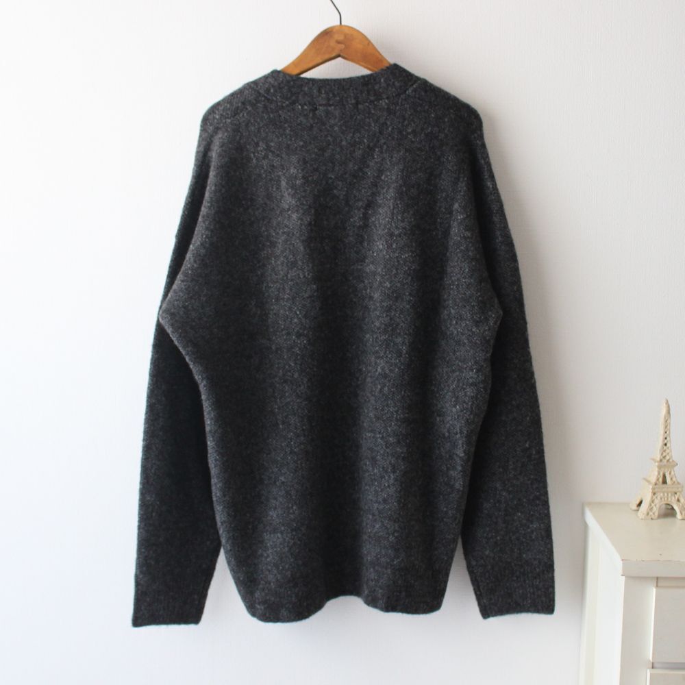 <商品> 新品、タケオキクチTHE SHOP TKのニットカーディガンです。カラーはチャコールです。 柔らかさと保温性を兼ね備え、且つストレッチ素材で着用時のストレスがかからないウール混素材。 ウール素材の風合いを活かしたシンプルな無地カーディガン。 リラックス感のあるゆとりのあるシルエットです。 |