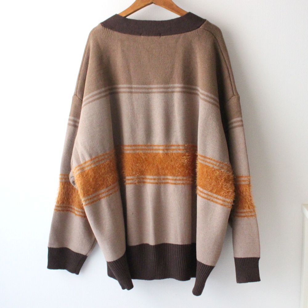 <商品> 新品 タケオキクチ THE SHOP TK ボーダーカーディガンです。カラーはベージュ系です。 毛が立った糸とスッキリのした編地になる糸を使い分けて使用。 目付もしっかりある、アウター代わりにもなる仕上がりです。 ふわふわの毛が目を引くデザインニットカーディガン。 思わず触りたくなるような配色部分の毛がデザインポイント! 配色のボーダーで部分的に毛羽を立てて冬らしい仕様になっています。 袖にはゆとりがあり、全体的にもオーバーサイズなので、少し厚みのあるインナートップスを中に着ても◎ 新品タグ付きです。 |