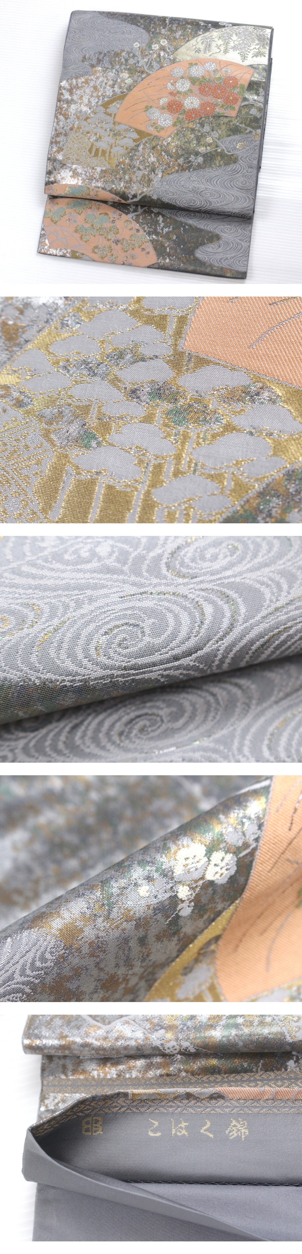 お着物好きからも絶大な人気を誇ります 老舗『服部織物』のこはく錦の正絹袋帯のご紹介です。 「こはく錦」とは、伝統技術を身につけた熟練の職人が織り上げる手織りの袋帯で、一本織り上げるのに数ヶ月かかる、他に類を見ない極上の逸品です。 歴史に裏付けられた最高級の技術で作れあげられた美術品は、着物に命を吹き込みその着姿に品格を与えます。 地色、風合いともに、本当に素晴らしいものです。 ぜひお手元にて、服部織物ならではの心地良い着姿をお楽しみくださいませ。 ※撮影時の部屋の照明によって画像の色に若干の差がございます。色味に差がございますことをご了承のうえご検討下さいませ。 …状態… 締め跡あり。 ※全くの新品ではございませんので、記載のない変色やスレ、ヤケ、その他僅かな難がある場合がございます。そのような理由でのキャンセルはお受けできませんので、ご了承の上ご検討お願いいたします。 |