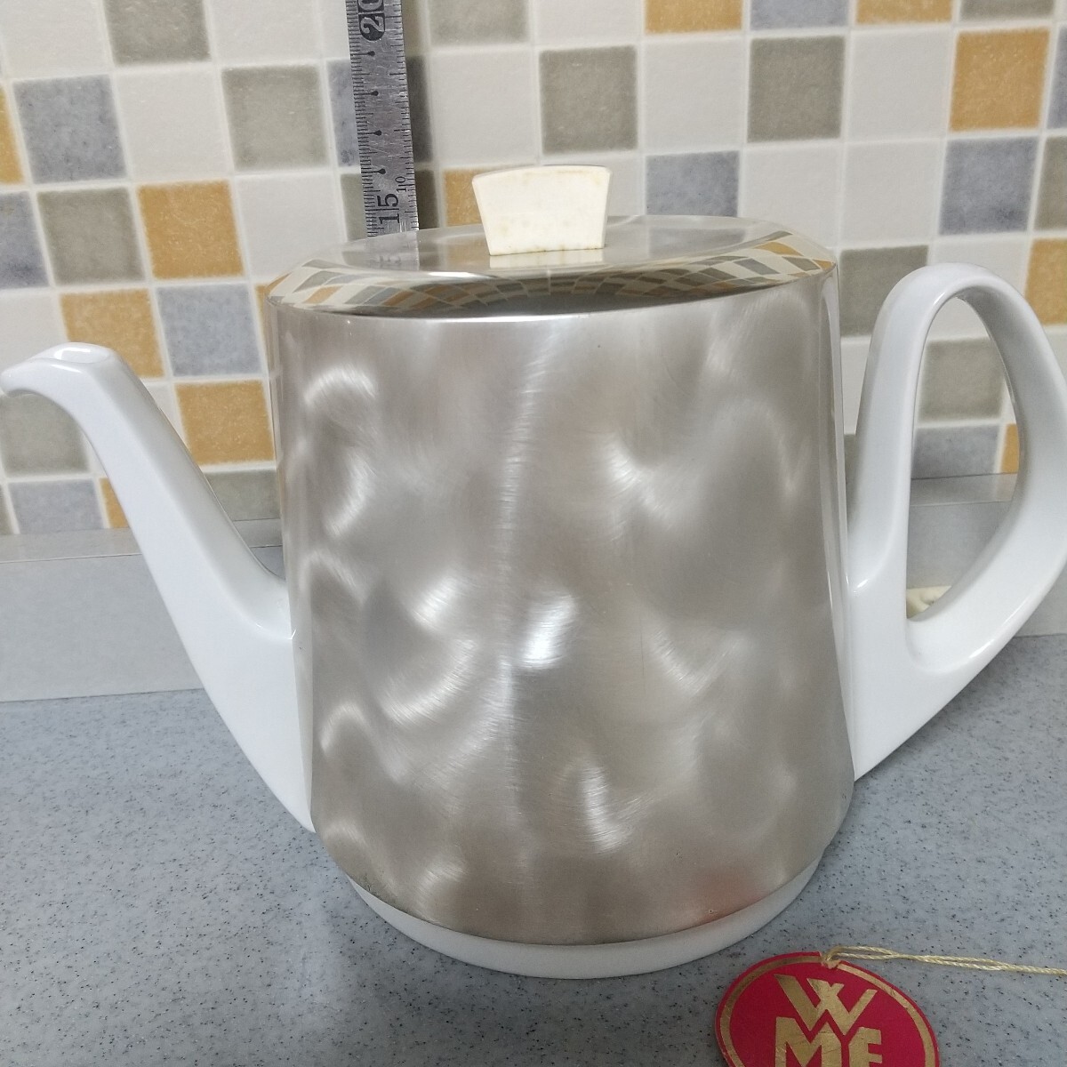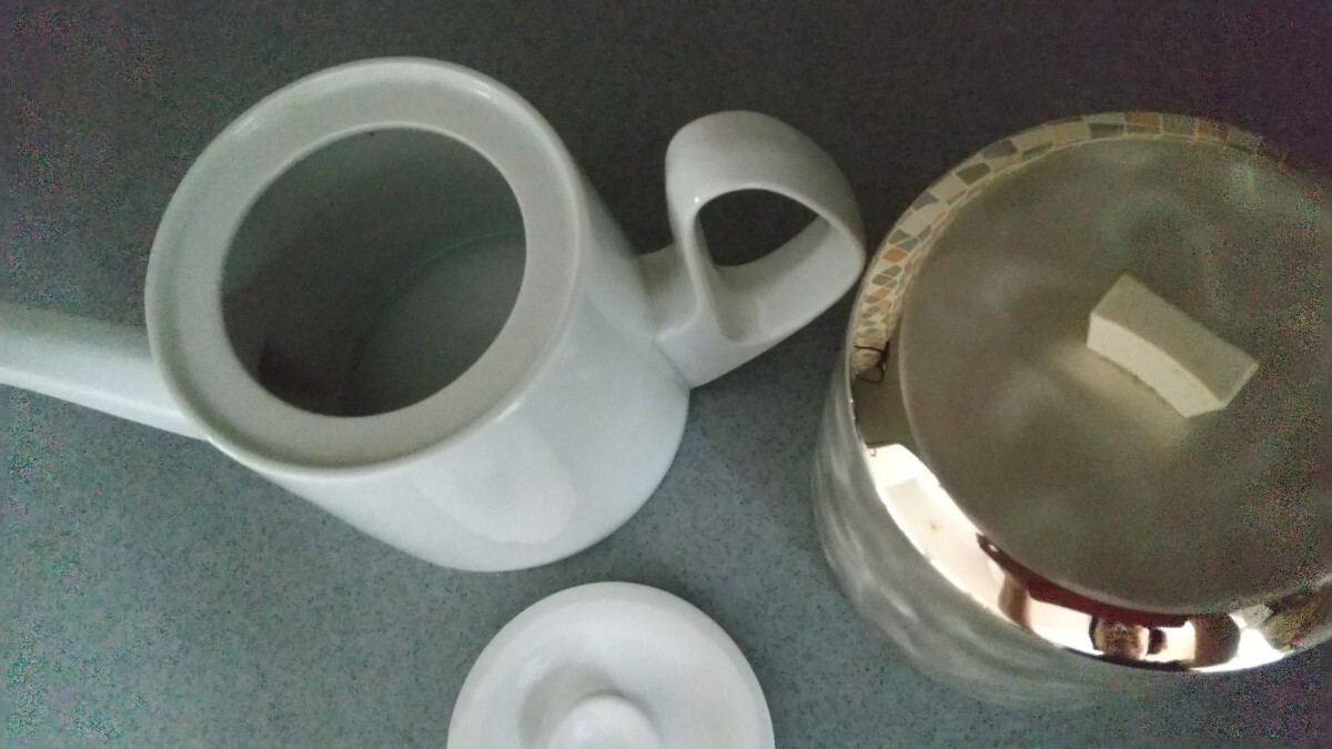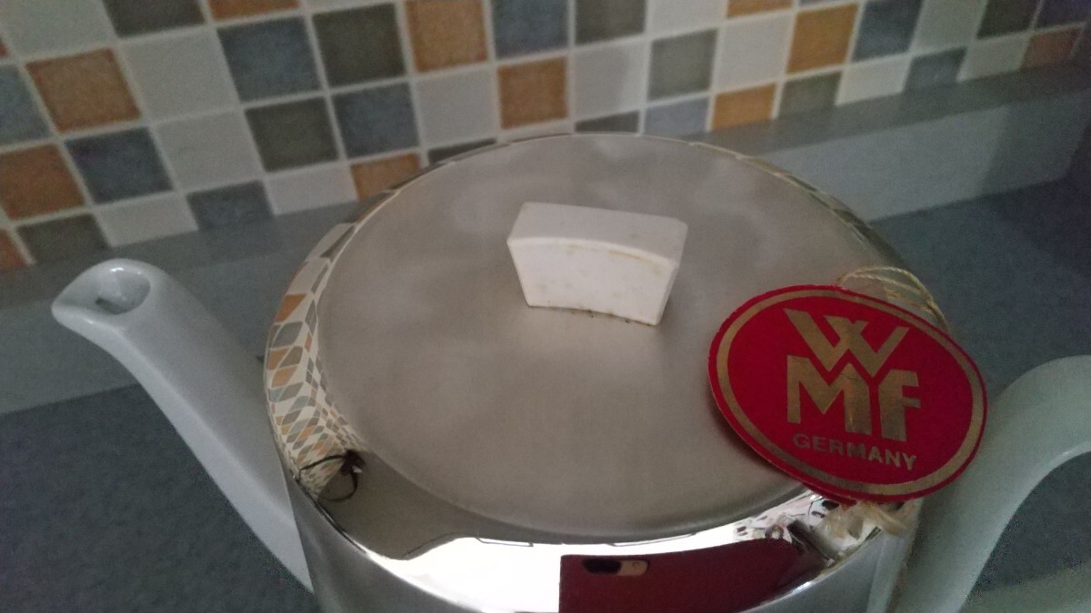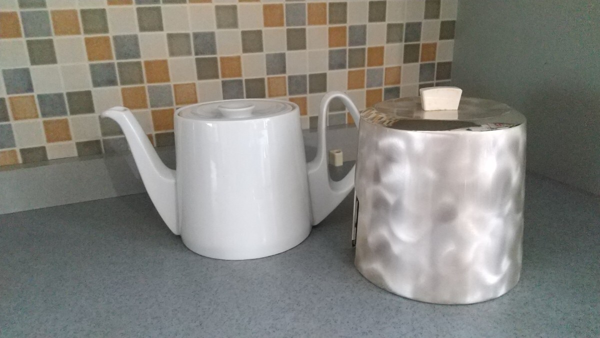 ドイツのWMF社の保温カバーの付いたヴィンテージ 大き目サイズのコーヒー、紅茶兼用ポット。 白磁のポットは、ドイツ・バイエルンのBAUSCHER/バウシャー社製。 ポットの容量は約1200mL、 取り外し可能な保温サーモカバーは頑丈で美しい光沢の18-10ステンレススチールのアウター、 インナーにフェルトとスポンジ素材を組み合わせた保温機能。 未使用品ですが素人の 自宅にての保管のヴィンテージ品ですのでUSED扱いとさせて下さい。 受け取り方には個人差もありますのでヴィンテージ USEDとしての出品をご理解される方のご入札をお願いします。 保温カバーつまみの部分に汚れがあります、写真でご確認ください。 小さな事を気になさる方、新品、完品をお探しの方は、ご入札をお控え下さい。 ※確認はしておりますが、多少の見落としはお許し下さい。 ノークレームノーリターンでUSEDにご理解ある方のみご入札下さい。 お箱はございません。 |