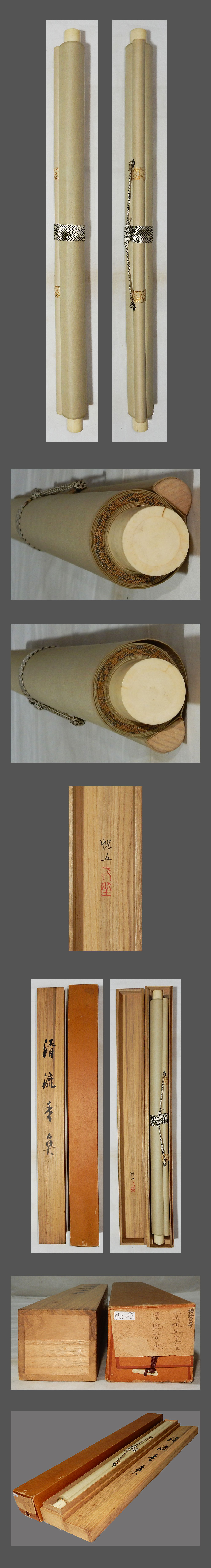 ・掛軸の軸先ですが、細心の注意を払って梱包しておりますが、 配送中の振動・気温・経年劣化等で外れてしまうことがあります。 軸先の外れは、破損ではございませんので、返品の対象にはなりません。 大変お手数ですが、お客様ご自身での修復をお願い致します。 ・添付写真の画像と説明文でご理解頂ける方、ご入札を宜しくお願い致します。 ・添付写真の画像は撮影の光度により、現物と若干の色合いの相違が生じる事があります。 ・添付写真の画像は受取完了のご連絡を頂いた後に速やかに消去しますのでご了承下さい。 ・土・日・祝日はお休みさせて頂きますので、商品発送は、月曜日以降になります。 ・祝日の場合は、翌日の平日以降の発送になります。 ・土・日・祝日は、メールの返信が若干遅れる事がございます。どうか、ご了承下さい。 ・時間的に余裕がない場合などでお答えが出来ない事も多々有ります。 ご不明な点は落札日前日までに早めにご質問下さい。 ・商品トラブルがあった場合は、直ちにご連絡下さい。 お取引に付きましては迅速・丁寧に対応させて頂きます。 ・落札後、できるだけ2日以内に連絡(返信)を頂ける方、 5日以内にご入金できる方の御入札を御願い致します。 ・新規の方や評価の総評が悪い方は当方の判断にて、入札取り消しを行う場合がございます。 ・お取引に付きましては、迅速、丁寧に対応致しますのでどうぞ、宜しくお願い致します。 ・古美術品や古物や古書画の出品が多いため、神経質な方がご入札される場合は、 ご自身が納得の行く価格でご入札ください。 ・万一、ヤフーのシステム障害により、公正なオークションができなかったまま終了し、 落札者様にご落札された場合は、当方より取引ナビで取引中止のご連絡を致します。 その時は、どうか、ご了承をお願い致します。 ・終了当日・直前の入札の取り消しは、 トラブルの原因となりますのでご遠慮お願い致します。 ・入札後の取り消し(キャンセル)は行っておりません。 ・落札後のキャンセル・返品はお断りしてます。 入札前によくご確認頂き、間違いのないようにご注意下さい。 |