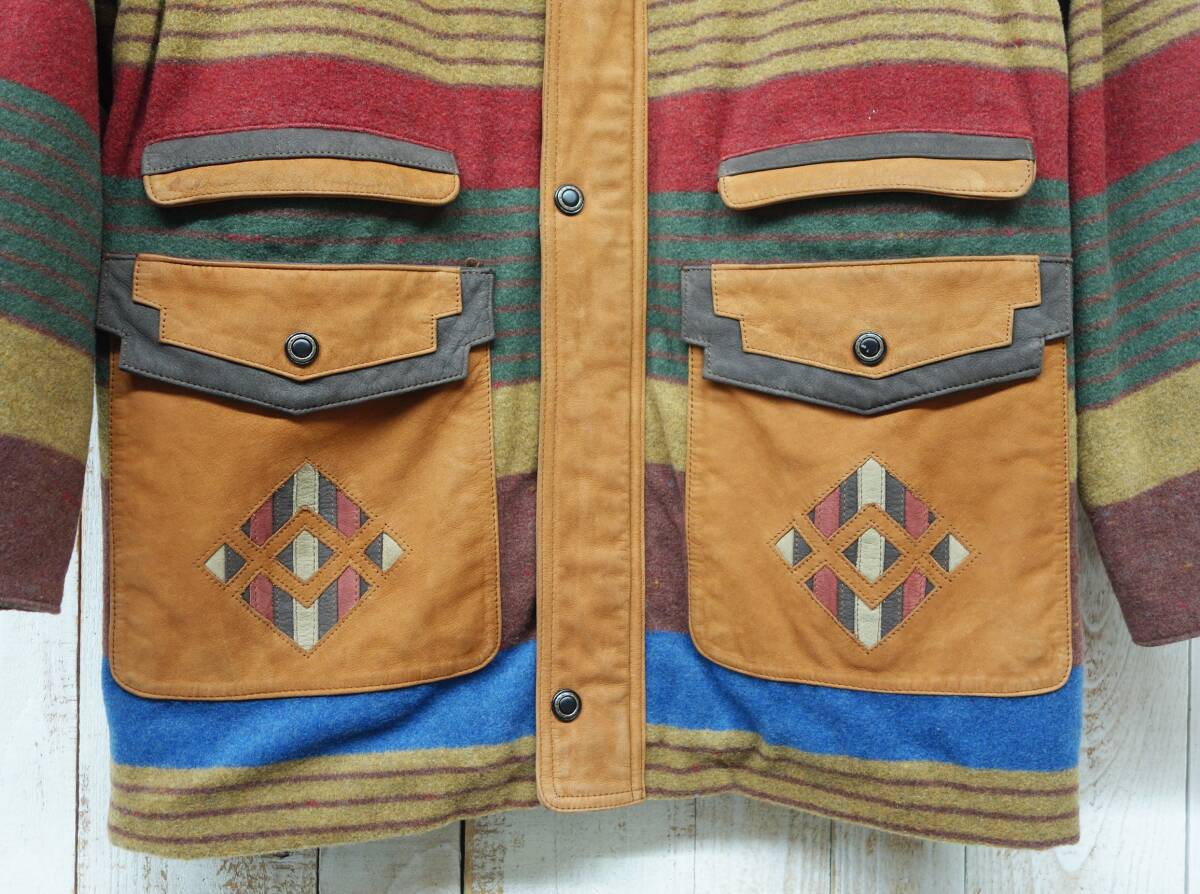 *レトロメンズウェア *STATION TO PASHU パシュ 株式会社 ステイション *COW LEATHER & WOOL カウレザージャケット ショートコート 中綿アウター *MODEL LT-2709 *お色 マルチ ブラウン/キャメル系 |