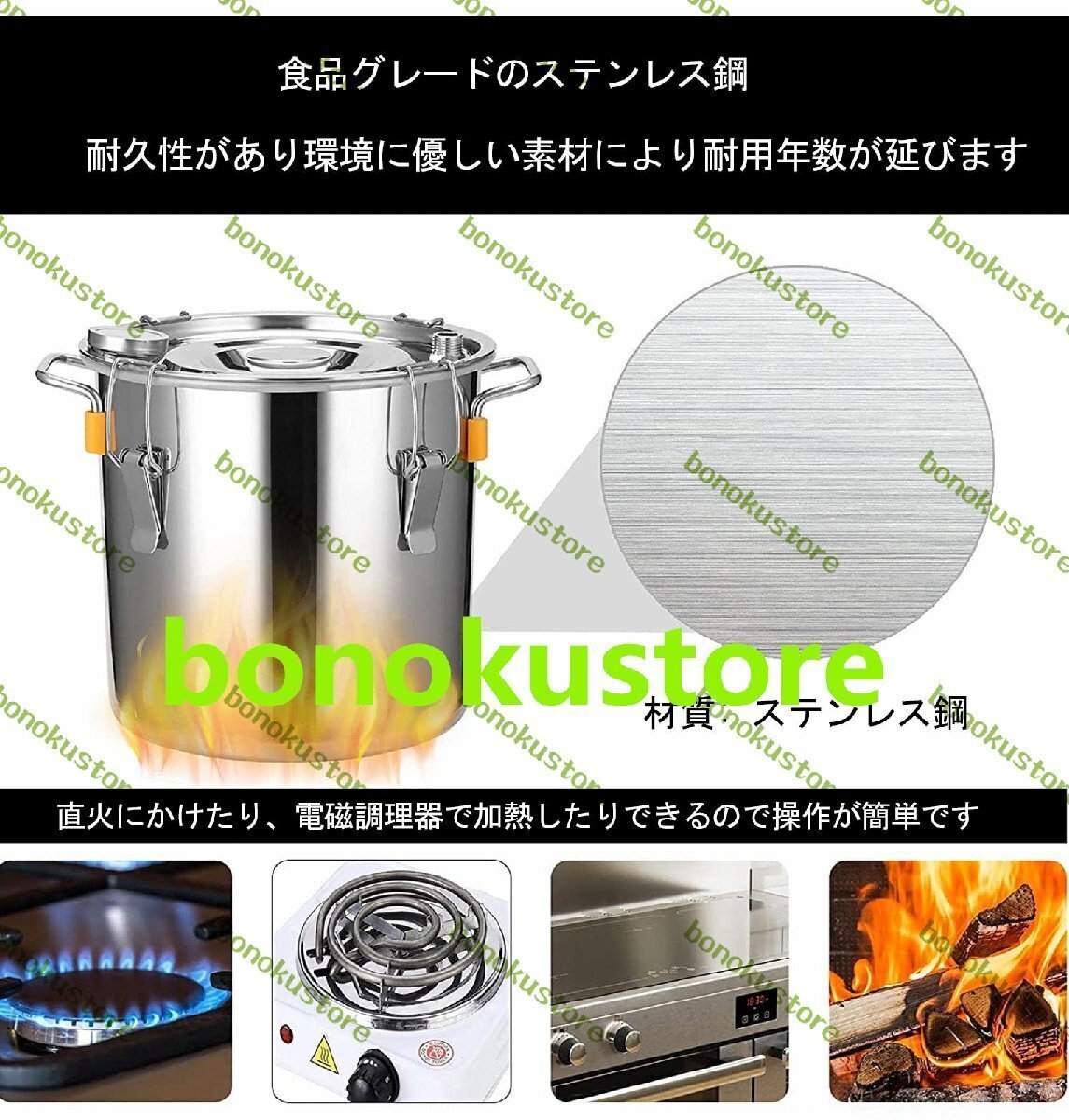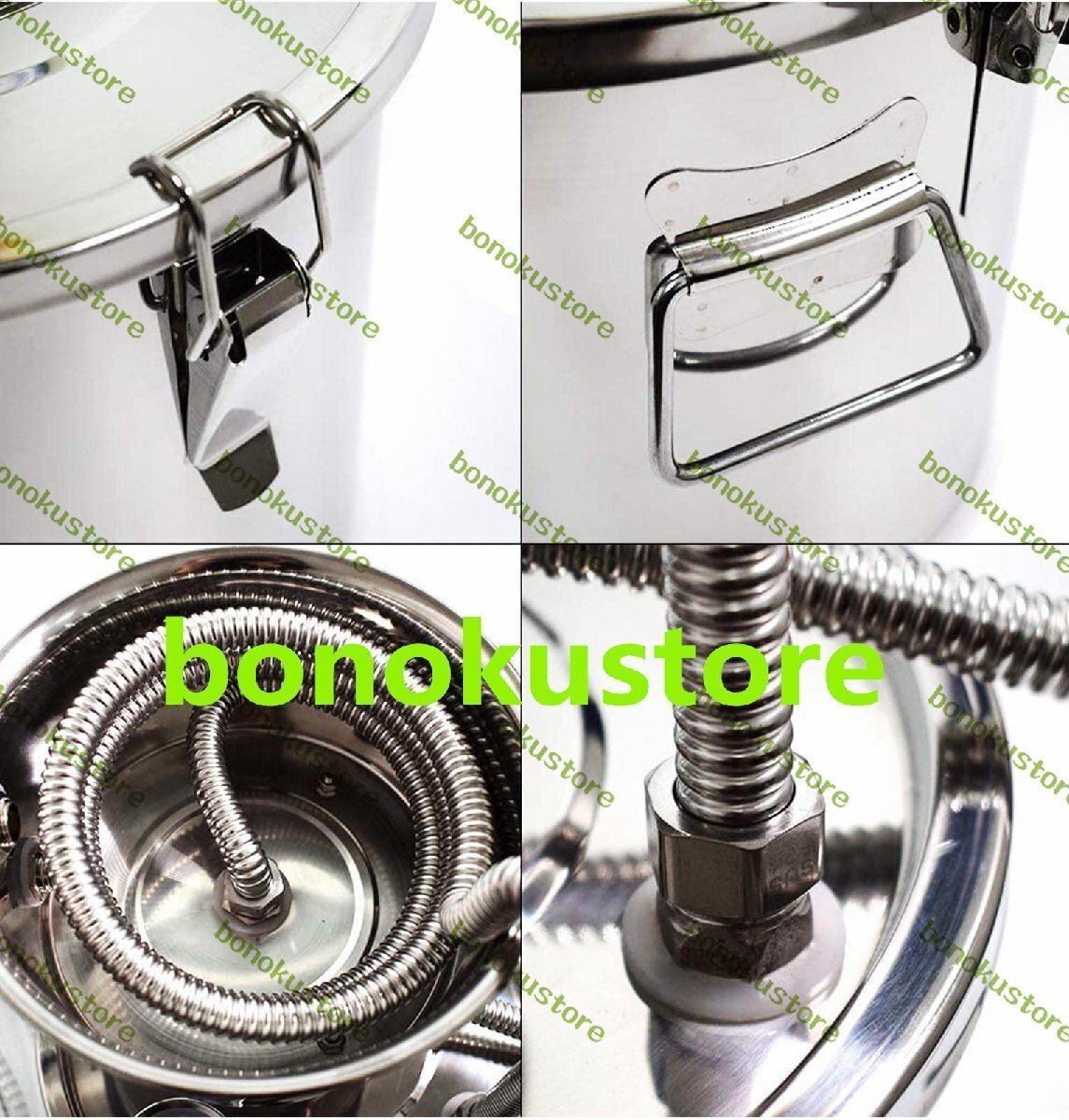 摂氏/華氏温度計アルコール蒸留器コンプリートキットには摂氏と華氏を表示する金属製温度計が含まれており、使用中の発酵槽の温度をより正確に把握できます。 | 優れたシール性能蒸留キットにはシリコンシールと 4 つのステンレス鋼の留め金が装備されており、蓋を閉めたときに完璧にフィットして密閉性が向上します。 | 多用途なアプリケーションこのアルコール蒸留器は初心者にも専門家にも適しており、果実酒、ウイスキー、ブランデー、クラフトビール、蒸留水、エッセンシャルオイル、ハイドロゾル、発酵穀物などの製造に広く適用されています。 |