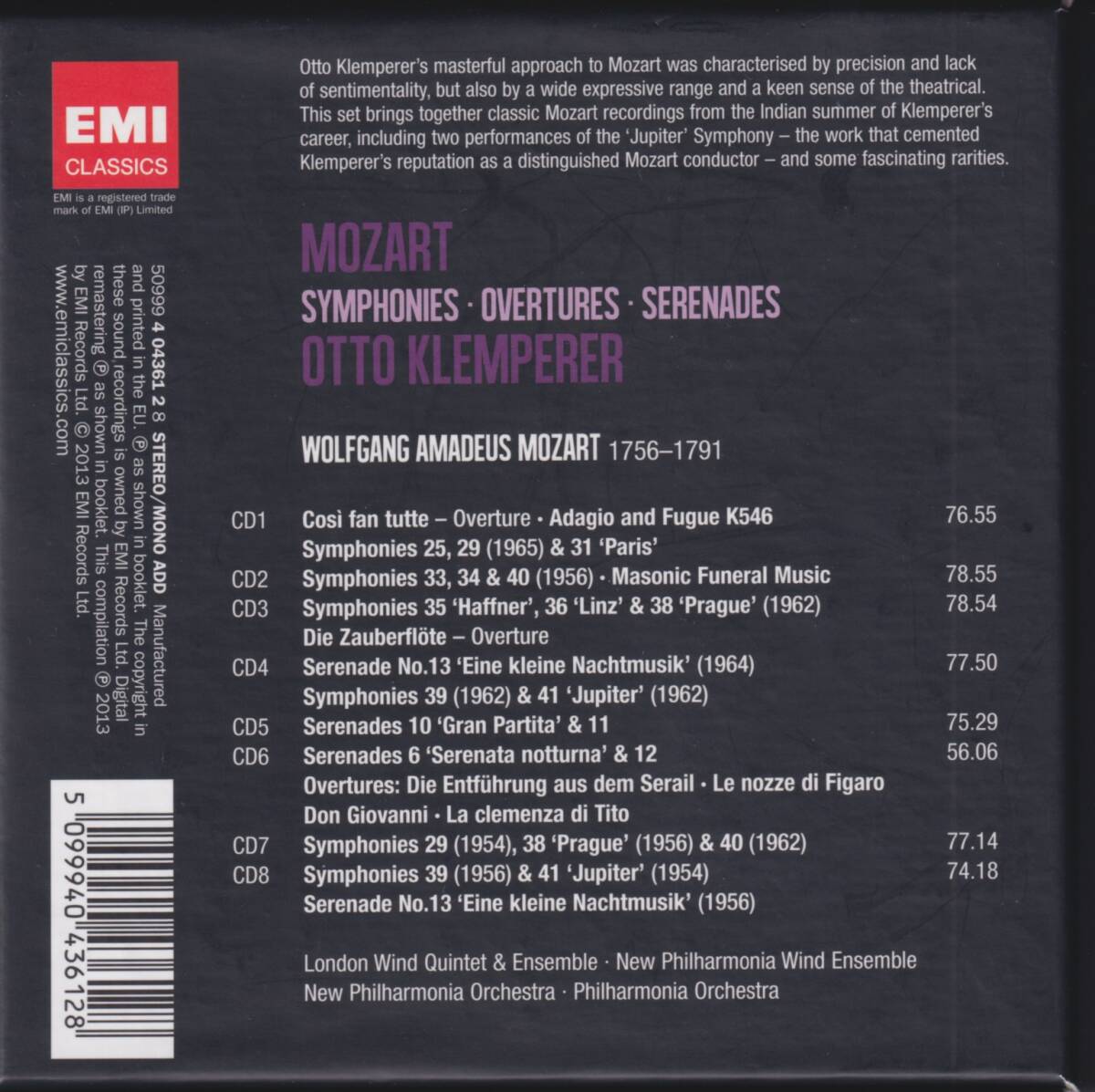 クレンペラーはモーツァルトを偏愛していただけに、有名なEMIステレオ音源のほかにもいくつかのEMIでの録音が残されており、今回のセットでは、Disc7とDisc8などにそれら貴重な音源が収録されているのが大きなポイントとなっています。 交響曲第29番、第38番、第39番、第40番、第41番、『アイネ・クライネ・ナハトムジーク』についてそれぞれ2種の演奏を楽しめるというすごいことになっています。(HMV)