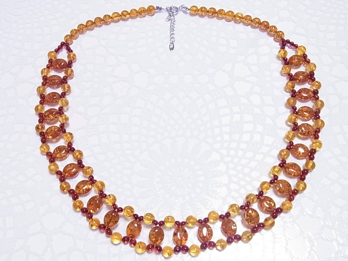 【1点限りの販売になります】 琥珀は、模造品や再生琥珀等の天然琥珀ではない琥珀が多く出回っていますが、鑑別機関の最高峰 「中央宝石研究所」 で鑑別をして、間違いない商品を供給してくれる、信用できるサプライヤーから仕入れをしています。 近年、産出量が激減し、値段が高騰しております。また産出国の輸出規制等によって、日本への輸入量も激減しています。 使用石 : 天然琥珀 約10×8mm(オーバル) 6mm 4mm 天然琥珀特有のグリッターには、個体差があります。 長さ : 約50+5cm 重さ : 約21g 留め金 : 引き輪式 アジャスター約5cm シルバー925(ロジウム・コーティング) | |||