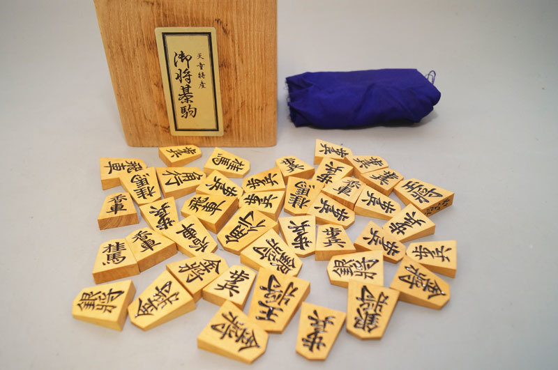 【真作】鷹山作 将棋駒 歩19枚 天童特産 箱入-581