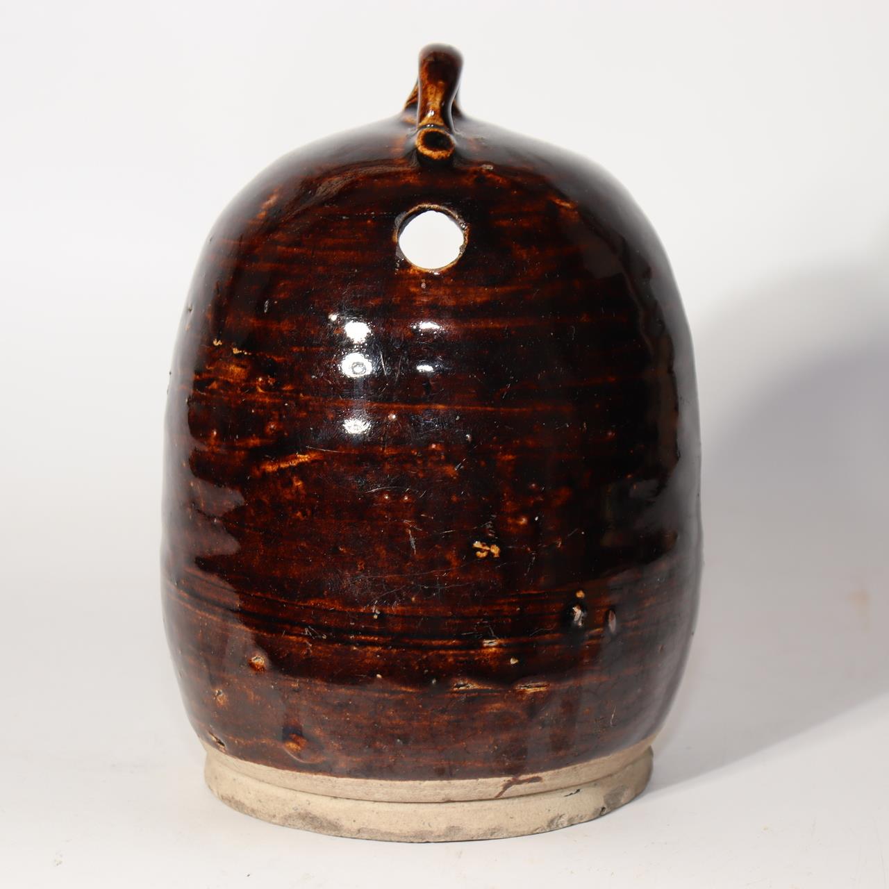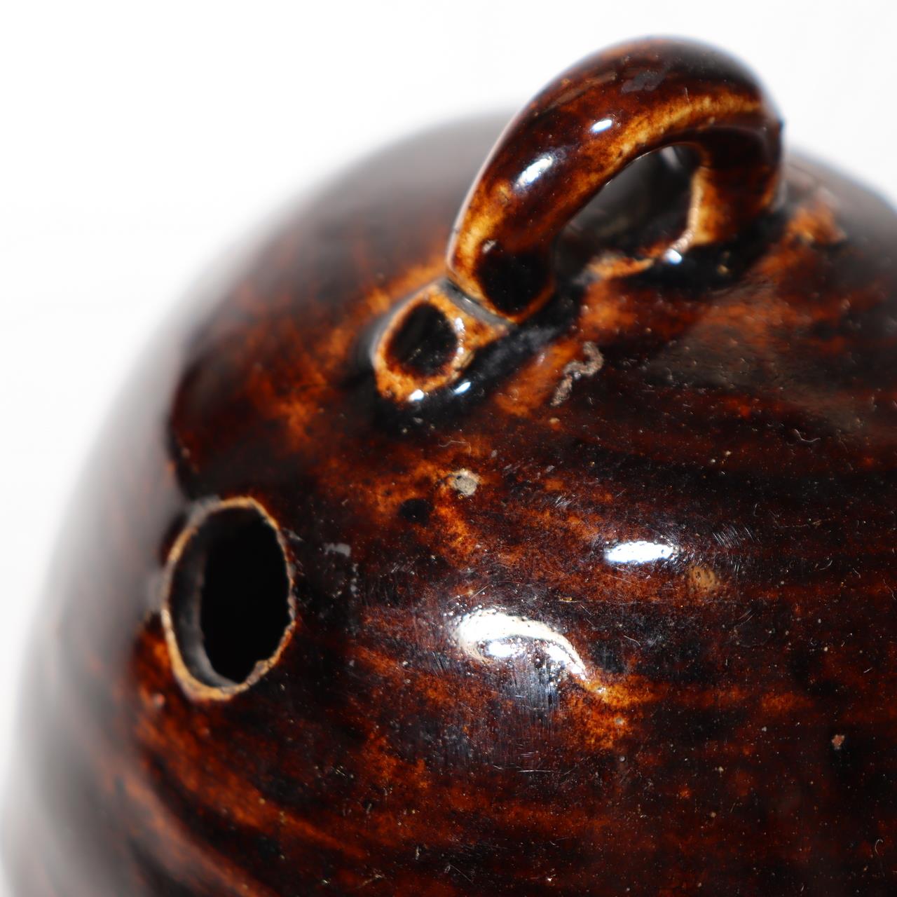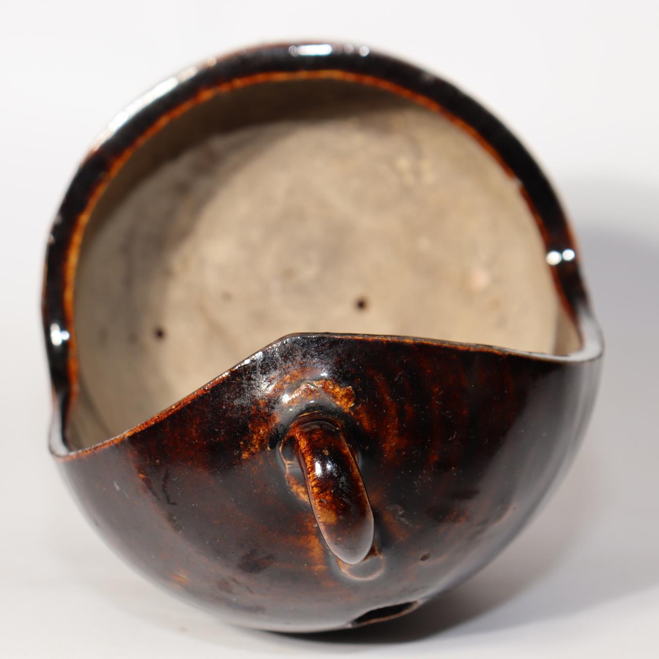 ◆ 商品説明本品は美濃地方から出土した「火もらい」です。当時の生活に欠かせなかった火を隣家から分けてもらい運ぶための器で、 現代のマッチ以前の生活文化を伝える大変貴重な道具です。 小型で持ち運びやすいサイズのものは特に希少で、本作は胴部に深みのある鉄釉を施し、 底部には白い胎土が見られる典型的な美濃焼の特徴を備えています。 【サイズ】 高さ:約15cm 直径:約11.5cm 重量:約435g 【状態】 大きな欠けやヒビはなく、良好な保存状態です。 使用や出土に伴う土汚れや経年の風合いが見られます。 当方は骨董品を中心に取り扱っており、安心してお取引いただけるよう丁寧な対応・梱包を心がけております。 ◆ 商品について