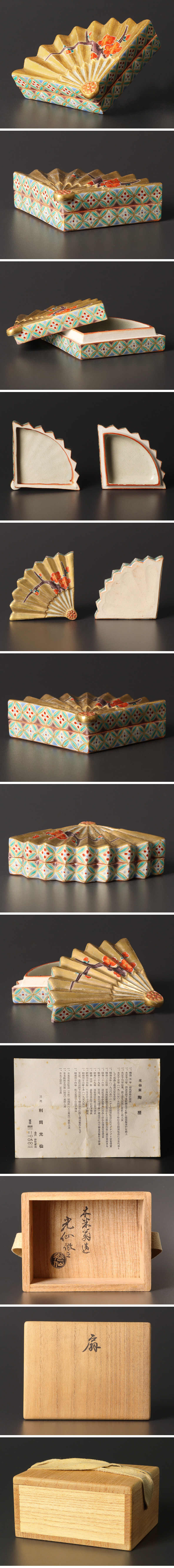 【古美味】三代利岡光仙 扇香合 茶道具 保証品 |