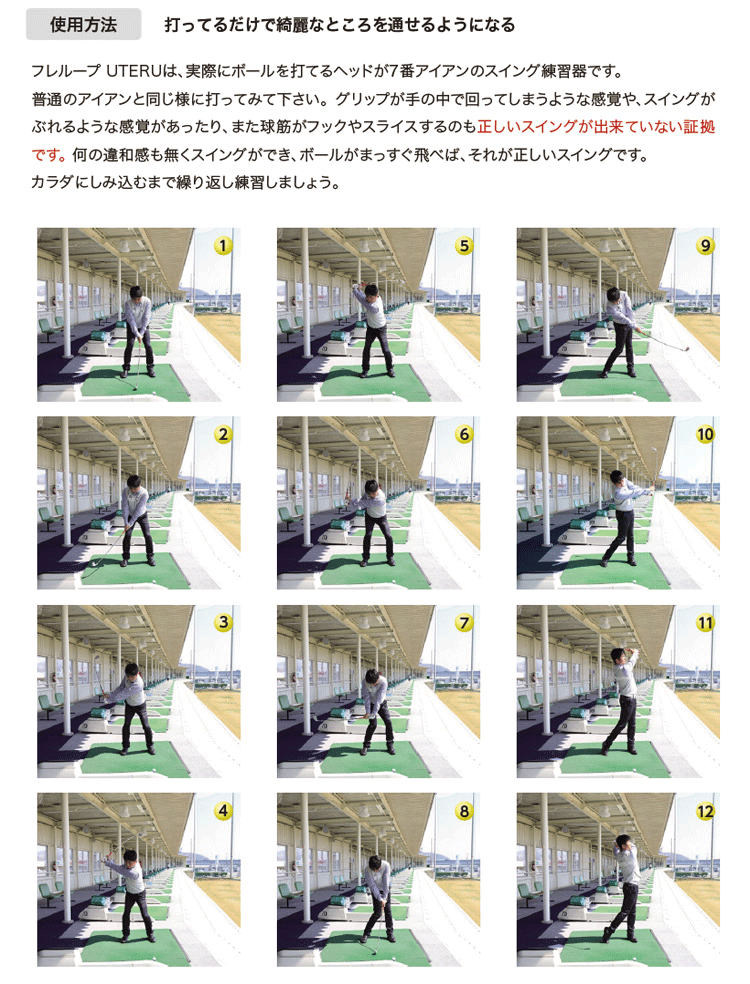 【商品特徴】 実際にボールを打てるスイング練習器「FURELOOP UTERU LEFTHAND(フレループ ウテル レフトハンド)」。 シャフトの絶妙なカーブによる慣性モーメントが、あなたのスイングを自然に綺麗なスイングへと導いてくれます。 ヘッドは、限定カラーのアーミーレッドとアーミーグリーンの2色をご用意。 人気のグリップメーカーIOMICグリップを装着し、より実践に近い練習ができる。 熱血!!ゴルフ塾!の小林プロ発案・監修の、打ってるだけで正しいスイングが身につく画期的な練習器です。 フレループを使った練習の効果を実感された沢山の方々からのご要望で、遂にできました。 ボールを打てるフレループ、その名もUTERU(ウテル)です。 この練習器の良さは、シャフトの絶妙なカーブによる慣性モーメントが、自然なローテーションや正しいコックの使い方を実際にボールを 打ちながら理解できるところです。 【商品詳細】 ●状態:新品・未使用品 ●ロフト:29度 (7番アイアン) ●長さ:37インチ ●重量:430g ●ヘッド:ステンレス ●シャフト:オリジナル スチールシャフト ●グリップ:Lynxオリジナル ラバーグリップ ●ヘッドカラー:レッド ●グリップカラー:コーラルレッド ※撮影時の光量の具合や、ご覧いただいております画面環境によりまして、実際の商品と若干色味が違う場合がございます。 ![]() |