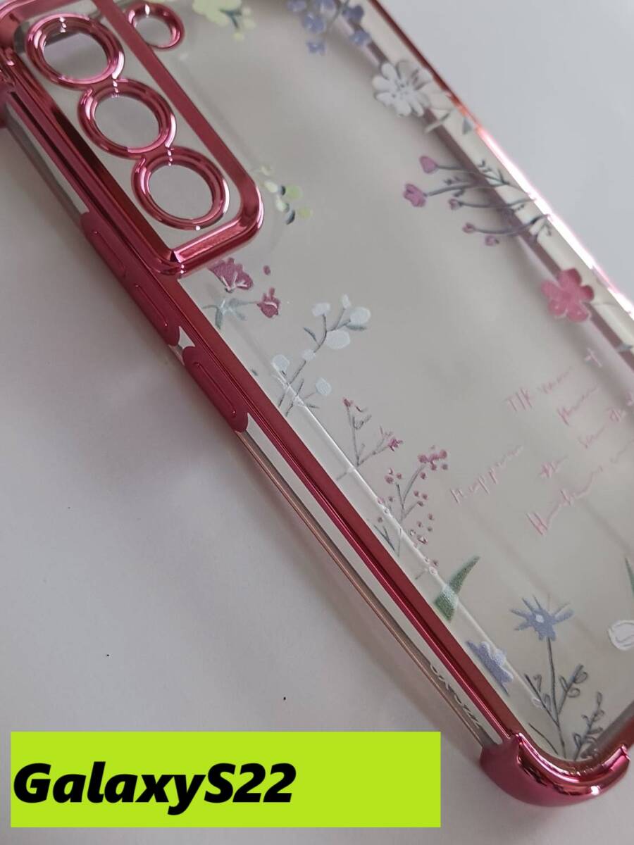 GalaxyS22 ピンクフラワー柄 メッキ加工風 Galaxyケース