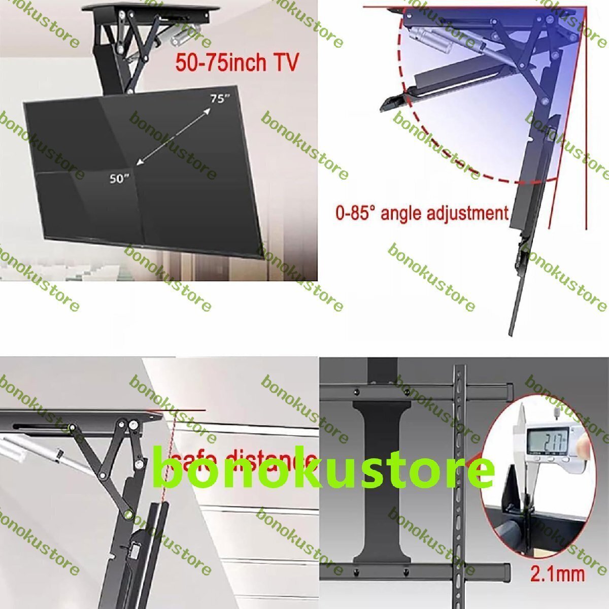 商品の説明 名前: テレビキャビネット 上下チルト角度:0~-85° 適用サイズ:50インチ~70インチ 水平微調整:+2~-2° 最大荷重: 80KG 入力電圧: 100~240v 設置方法:天井設置/壁設置 ブラケット材質(本体):冷間圧延鋼材 上面からの距離:126mm その他のアクセサリ: マ名前: テレビキャビネット 上下チルト角度:0~-85° 適用サイズ:50インチ~70インチ 水平微調整:+2~-2° 最大荷重: 80KG 入力電圧: 100~240v 設置方法:天井設置/壁設置 ブラケット材質(本体):冷間圧延鋼材 上面からの距離:126mm その他のアクセサリ: マルチ仕様のネジ パックとケーブル タイを取り付けます 制御モード: スイッチ制御/リモート制御