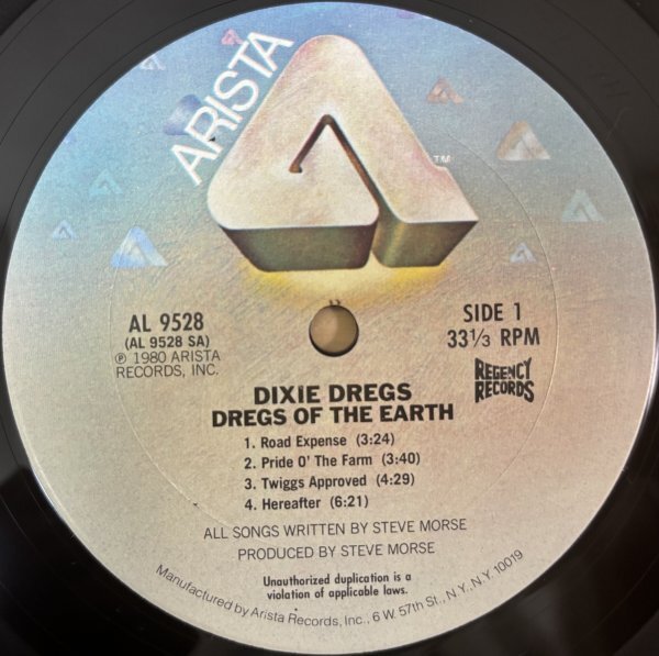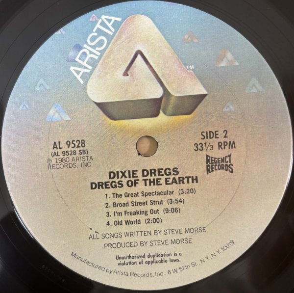 【 収録曲 】 A1. Road Expense (3:24) A2. Pride O' The Farm (3:40) A3. Twiggs Approved (4:29) A4. Hereafter (6:21) B1. The Great Spectacular (3:20) B2. Broad Street Strut (3:54) B3. I'm Freaking Out (9:06) B4. Old World (2:00) Total Time: 36:14 【 Line-up / Musicians 】 - Steve Morse / acoustic, electric & pedal steel guitars, banjo, producer - Terry "T" Lavitz / piano, electric piano, organ, synthesizer, clavinet - Allen Sloan / violin, electric violin, viola - Andy West / bass, fretless bass - Rod Morgenstein / drums, percussion ※キーボードがT・ラヴィッツに交代し、レーベルも移籍してバンド名も単に「DREGS」と改めて(このアルバムでは何故か「DIXIE DREGS」の表記のままなのだが)心機一転のアルバム。前々作「What If」に比べてスティーヴ・モーズの比重がより高まっている。カラフルで控え目ながらも、しっかりと厚くサポートするT・ラヴィッツのプレイがモーズのギターを引き立たせている印象。特にシンセサイザーよりもオルガン、ピアノ等を多用しており、自然体な感じが受け取れる。そのせいかモーズのギターものびのびしていて、バックのうまさに乗せられてバリバリ演奏している。'80年代の初頭を飾るアルバムにふさわしい秀逸な仕上り。 ( アメリカン・ロック集成より ) 【 参考音源 】 DIXIE DREGS - DREGS OF THE EARTH - FULL ALBUM |