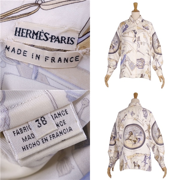 | 美品 エルメス HERMES シャツ マルジェラ期 ブラウス ロングスリーブ シルク トップス レディース 38(M) マルチカラー |