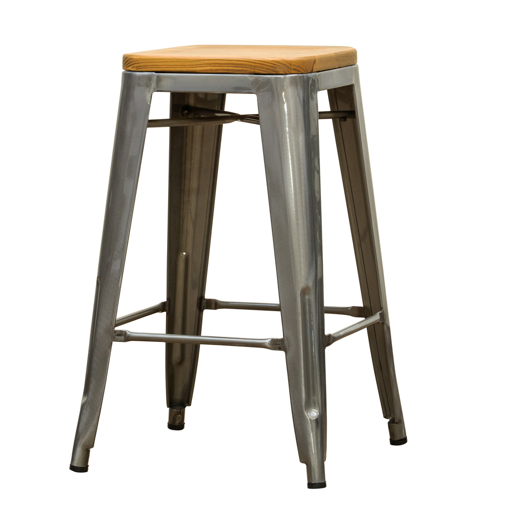 バースツール カウンターチェア スチール脚 座面木製 スタッキング アメリカン イス 重ね置き JH-02(SV) シルバー