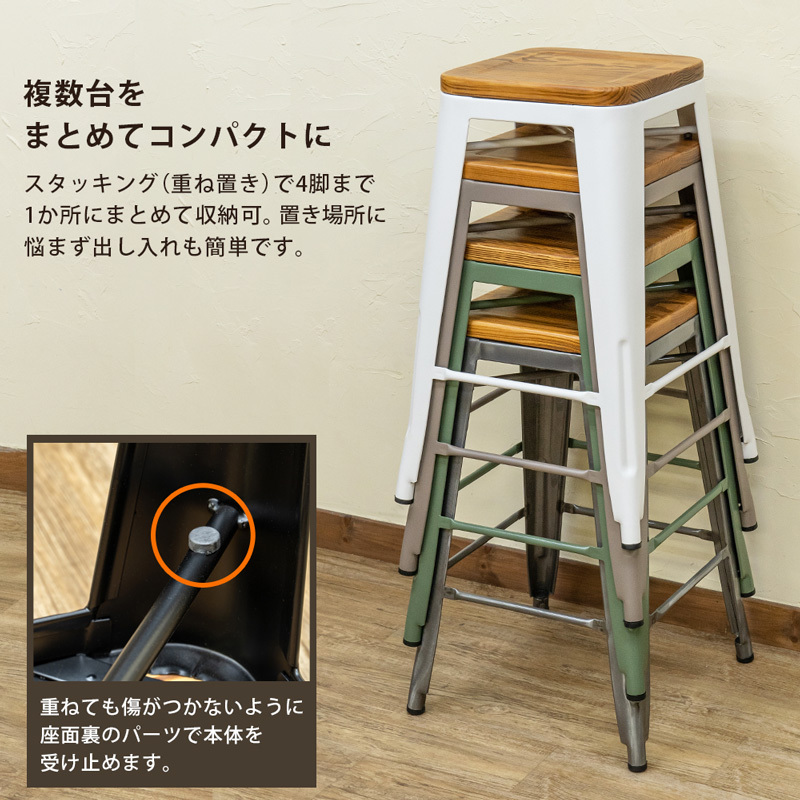 バースツール カウンターチェア スチール脚 座面木製 スタッキング アメリカン イス 重ね置き JH-02(SV) シルバー [浏览原始页面]