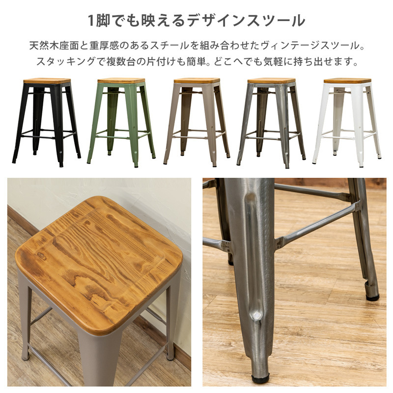 天然木パイン材とスチールフレームを組み合わせたヴィンテージ空間にぴったりなバースツール。