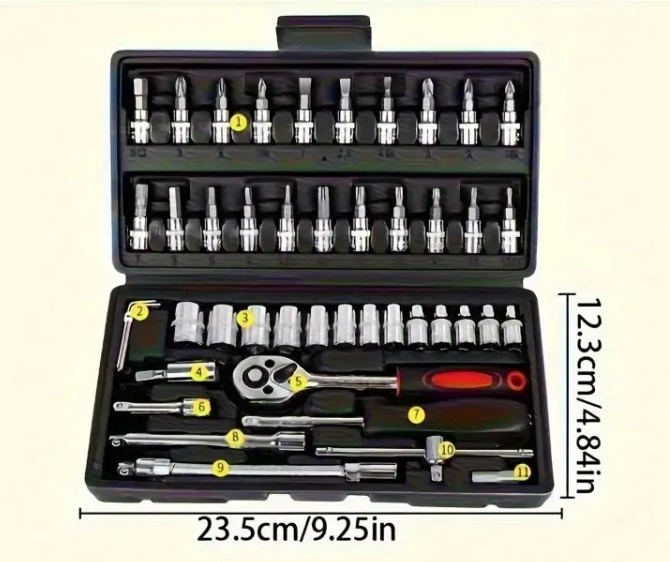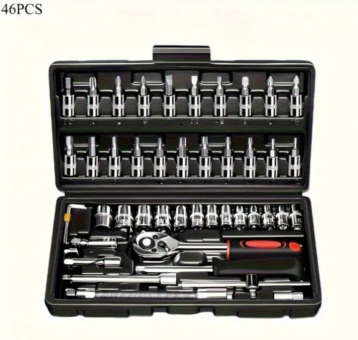 | 商品紹介 | ※プラケース入り 豪華46点セット。 ◎・日曜大工など◎DIY スパナ ドライバー ソケットレンチ トルクス ヘックス ◎ソケットラチェットレンチアダプターの豪華46点セットです ◎ホームセンターなどで販売されております工具セットはラチェット・ ソケットのみのセットが多いですがこちらの工具セットはトルクスなどの 工具もセットになっておりますのでDIY時に活躍すること間違いなしです! ◎差込角別にソケットの色分けをしており、差込角ごとの識別が容易です ※ラチェットハンドルで、細やかな動きが可能で狭い場所での作業は抜群です ※送料無料;全国共通0円(〒 定形外便 又はレターパック他;配送方法の指定不可)。※在庫少。 ※六角ボルト・ナットやネジの締付け、緩め作業に可能です。 ◎面接触加工のソケットはボルト・ナットの角に優しい仕上げになっています。 ◎簡単な補修や緊急時の備えとしてツールをお勧めます! ※他の商品とあわせる混載同梱包はできません。 (宅配便希望の場合は送料問い合わせ下さい)代引き不可。領収書は個人のため不可。 ※他にも出品してますので、良かったらご覧ください。※休業日は自己紹介欄に記載してます。 全商品のページTOOLS1a |
