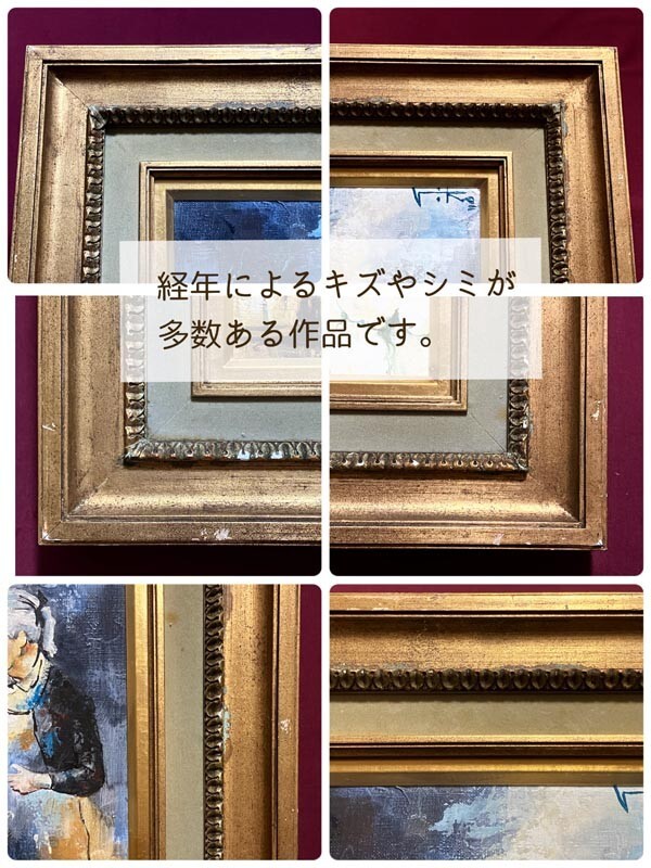 ●作品のコンディション 画面の状態は良好です(額や内側の装飾には経年による擦れキズが多数ございます) ●技法・サイン有り無し キャンバスに油彩(直筆サインあり) ●画面サイズ 縦31㎝×横22.5㎝ ●額サイズ 縦51㎝×横42㎝(多数キズあり 画像よりご確認ください) ●付属品について 箱なし (作品は保護材を使用して丁寧に梱包いたします) 出品作品は1度は人の手に渡った品物で、ストアのような完璧な品物ではございません。多数の画像を公開しておりますので、詳細にてご判断のうえ、慎重にご入札くださいますようお願い申し上げます。 |