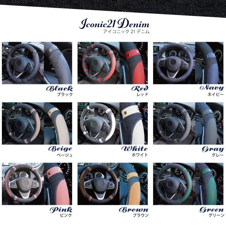 ハンドルカバー アイコニック21 チェックのデニム Sサイズ O型 ステアリング カバー 軽自動車 普通車 内装用品 Z-style