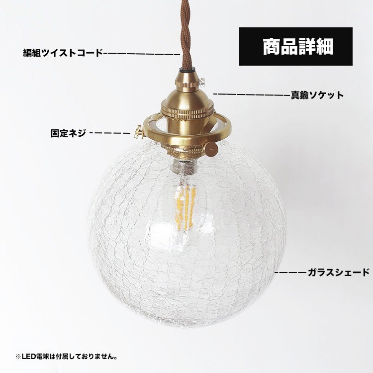 ●【落ち着いたお洒落な空間作り】 ひび割れ模様のクラックデザインで、電球の光がガラスを通して柔らかく広がり、温かみのある落ち着いた雰囲気をお部屋に演出します。白熱電球のような優しい光で、個性的なお部屋作りが可能です。