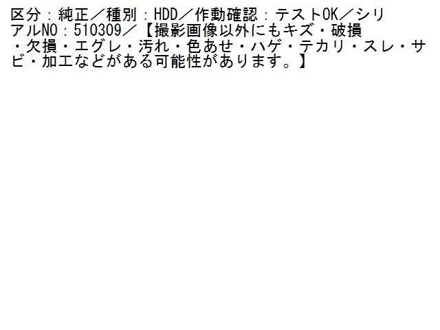 | 商品情報 | 区分:純正/種別:HDD/作動確認:テストOK/シリアルNO:510309/【撮影画像以外にもキズ・破損・欠損・エグレ・汚れ・色あせ・ハゲ・テカリ・スレ・サビ・加工などがある可能性があります。】 | ||