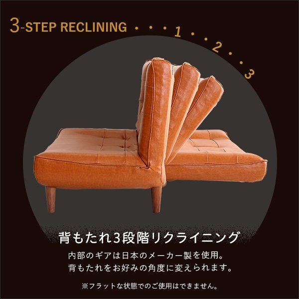 | ハイバックの2人掛けリクライニングヴィンテージソファ。 日本製ギア搭載で背もたれの角度を3段階に軽く調節できるソファです。 高級感のあるPVCレザーは水や汚れに強くお手入れしやすい生地。牛革テイストのヴィンテージカラーが雰囲気のある大人部屋を演出します。 2人掛けのワイドシートはポケットコイル仕様の本格派。体を点で支え、長時間でも疲れにくい快適な座り心地です。 脚を外せばロータイプソファとしてもお使い頂けます。 |