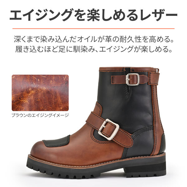 | ●MaxFritzの佐藤氏が監修、オーソドックスなショートタイプのエンジニアブーツ。厚み2mm以上のフルグレインレザーを厳選。一般的なものより多くのオイルを染み込ませた牛革で、履き込むほどに馴染んでエイジングが楽しめます。ワイズE相当の細身シルエットに少し厚めのアウトソールで、レザーブーツらしい重厚感。シフトパットと内蔵くるぶしパッドを装備し、安全性にも考慮しています。 ■仕様 ・カラー:コンビ ・サイズ:24.0cm(レディースサイズ) ※防水性能はありません。 ※サイズ・色交換は承れません。ご注文前に必ずサイズ・色をご確認下さい。 ※取り寄せ品 |
