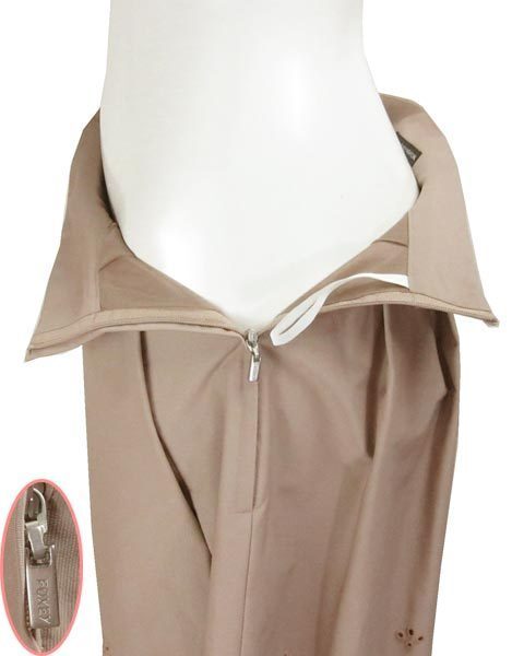 | フォクシーらしいフェミニンなスカート。ややハリと光沢のあるお生地になります。刺繍やパンチングデザインが華やかな雰囲気。カジュアルスタイルからきちんと感のあるスタイルまでコーディネートして頂けます。 |