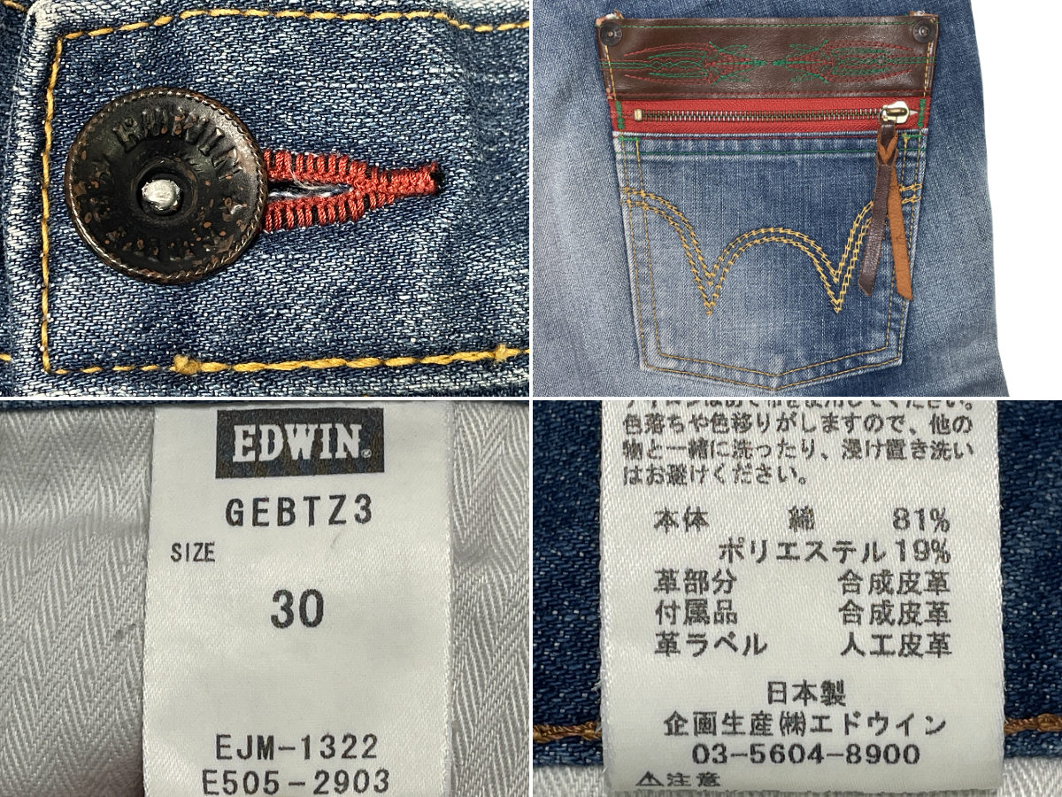 | ブランド:EDWIN 型 番 :GEBTZ3 カラー :インディゴ 状 態 :USED エドウィン BlueTrip スリムストレート デニムパンツ です。 ジップポケット付きの人気のモデルです。履きこんだ雰囲気と激ヒゲがカッコいいデニムです。 状態が良く色残りも良い、これから長く付き合える品です。お探しの方お勧めの1本です。 ■サイズ:製品表記 W30 ■サイズ:実寸(平置き) ウエスト 41.5cm (×2=約83cm) W33相当 股下 77.5m 股上 25.0cm ワタリ 29.0cm すそ幅 18.5cm | ||