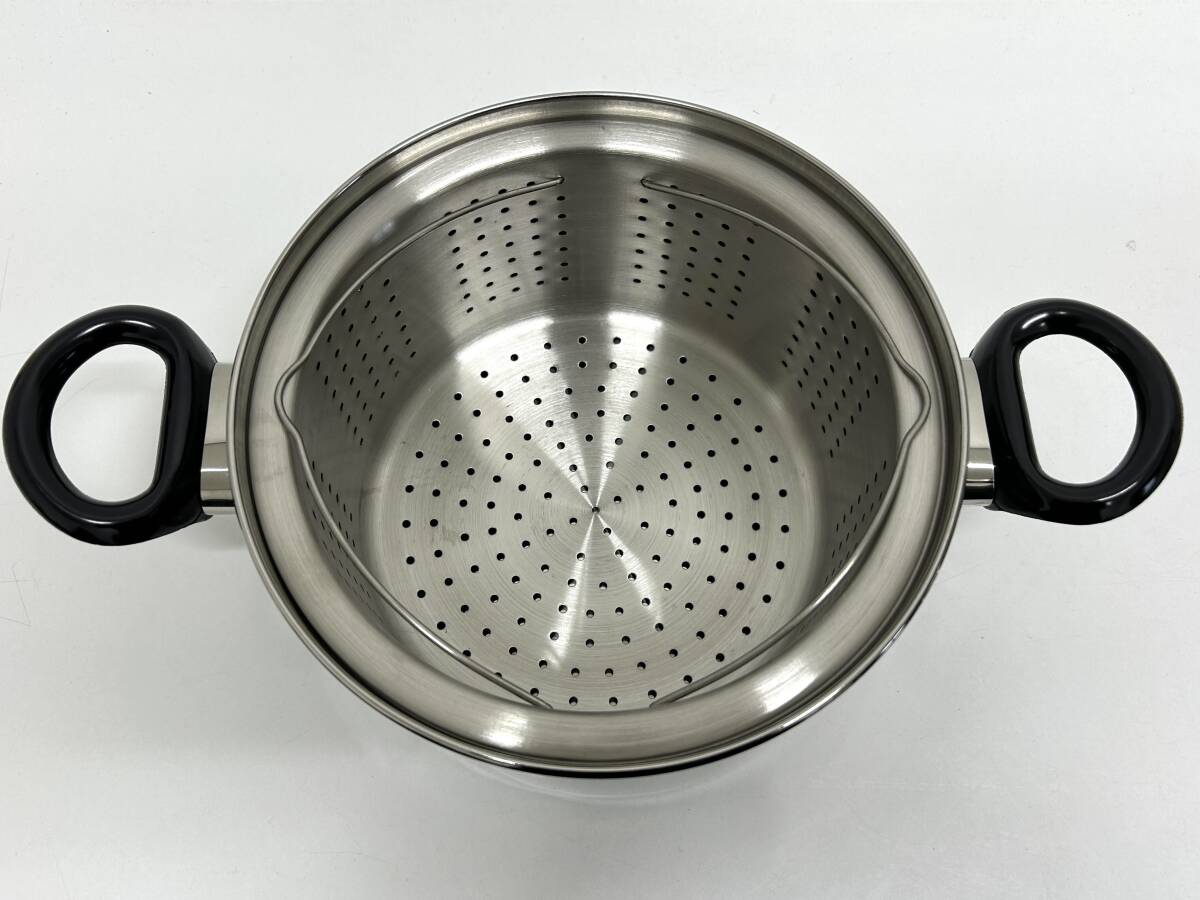 E-1127 【同梱不可】980円~ 未使用品 3層厚底ステンレス パスタ鍋 20cm IH-P20 最大容量:3.8L 調理器具 箱付き