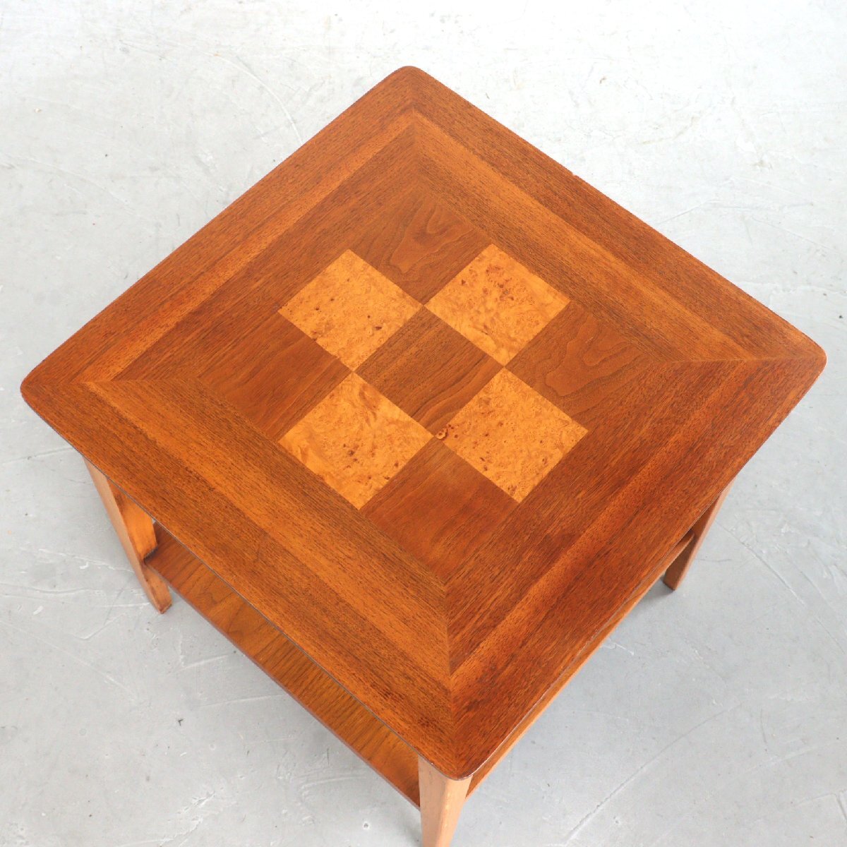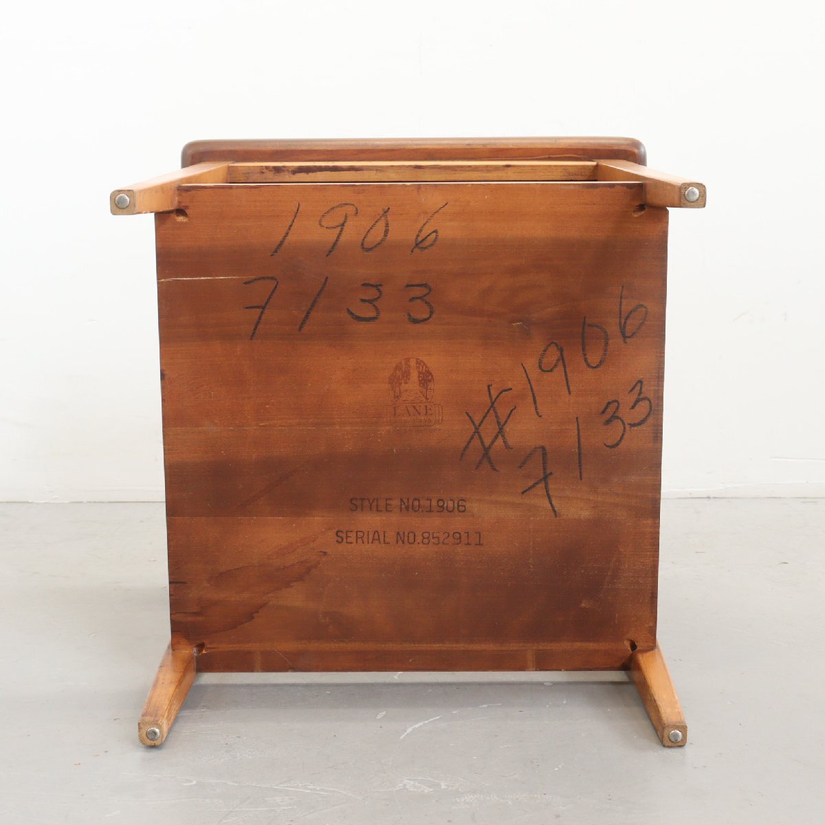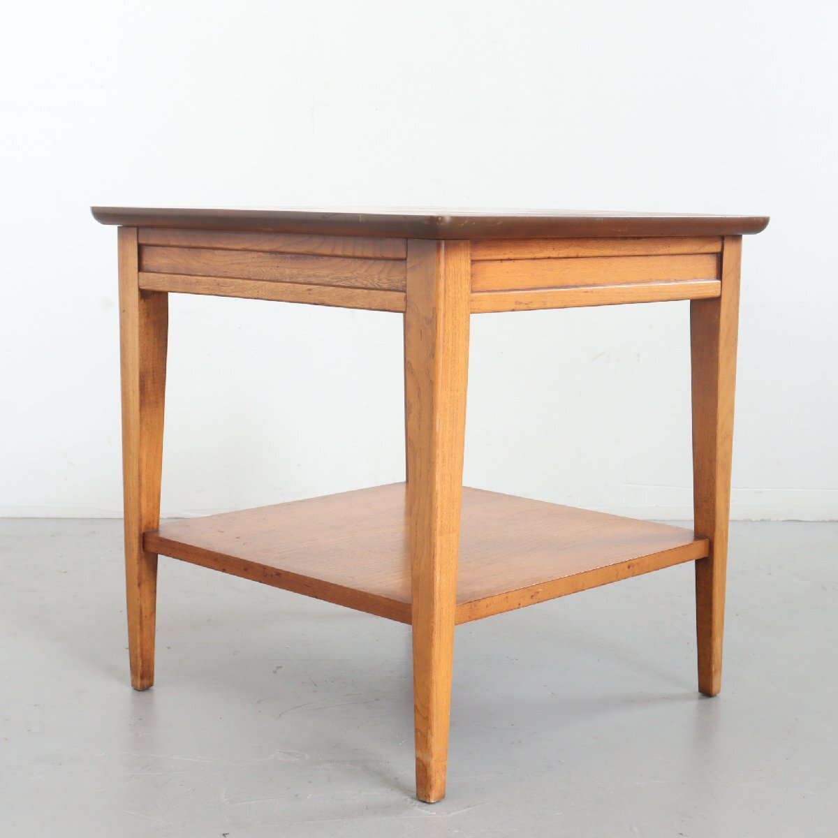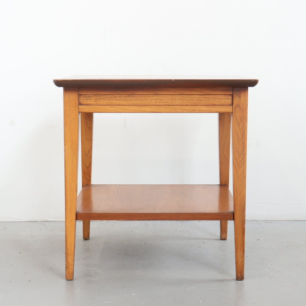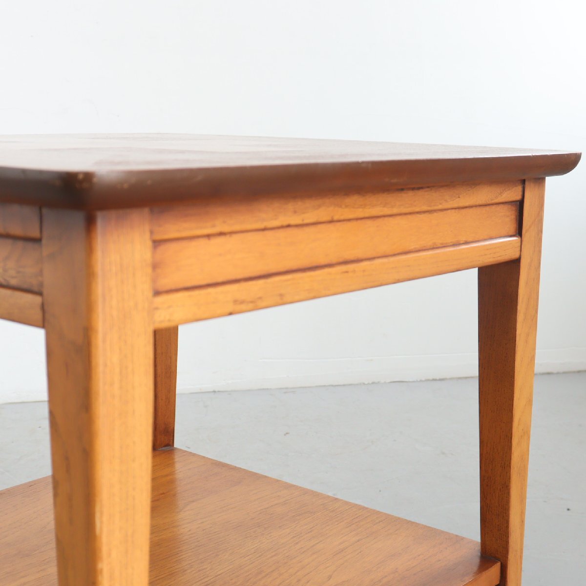 | 商品説明 explanation | 1950年頃のミッドセンチュリー期を代表する家具メーカー「LANE」社製のサイドテーブルです。 天板にはパーケットリーと呼ばれる幾何学模様の寄木細工されており、ミッドセンチュリー期らしい良い雰囲気です。 下部の棚板に書籍や小物の収納することができ、ベッドサイドやリビングなどの場所に丁度いいサイズ感です。 ご自宅や店舗にいかがでしょうか。 |