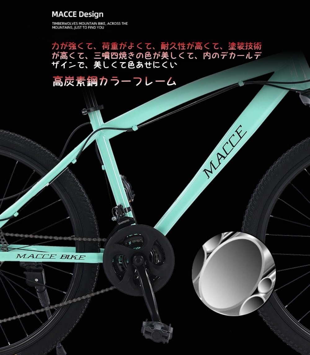 ■高炭素鋼フレーム:マウンテンバイク強度、安定性、靭性が優れて、振動を吸収してくれる能力が高い。 長時間に乗っても疲労感が少ないのが特徴。乗り心地の良い厚めのシートクッション | 色 | グリーン |