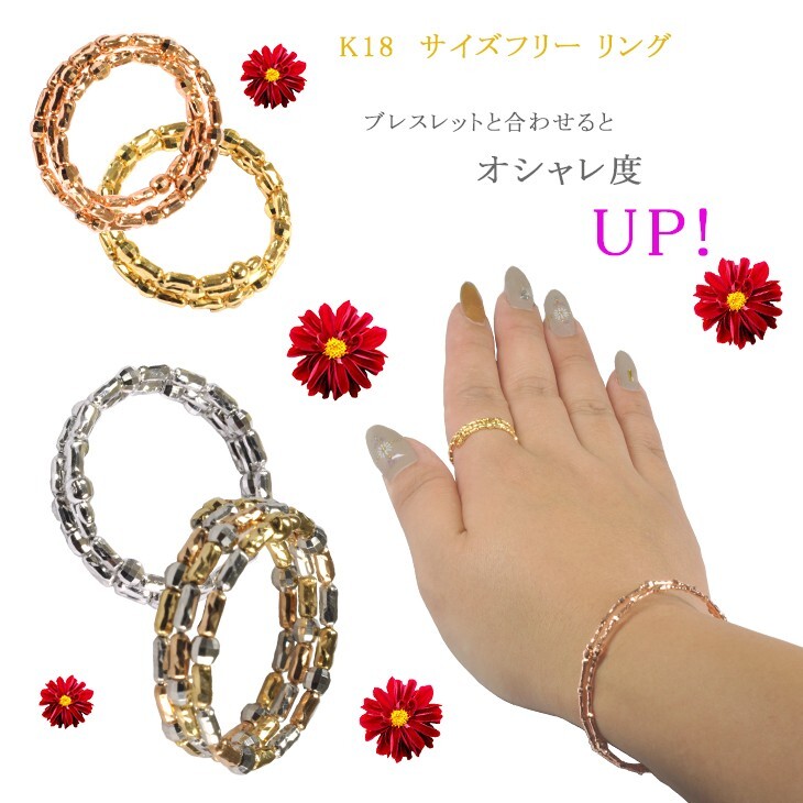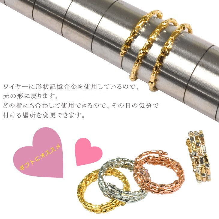 (※3重になっているので、厚み 約 4 mm) リング 直径 約 14mm ~ フリーサイズ 適応サイズ 4号 ~ 14号が目安です 重量 約 1.1 g前後 (形状記憶合金含む) |