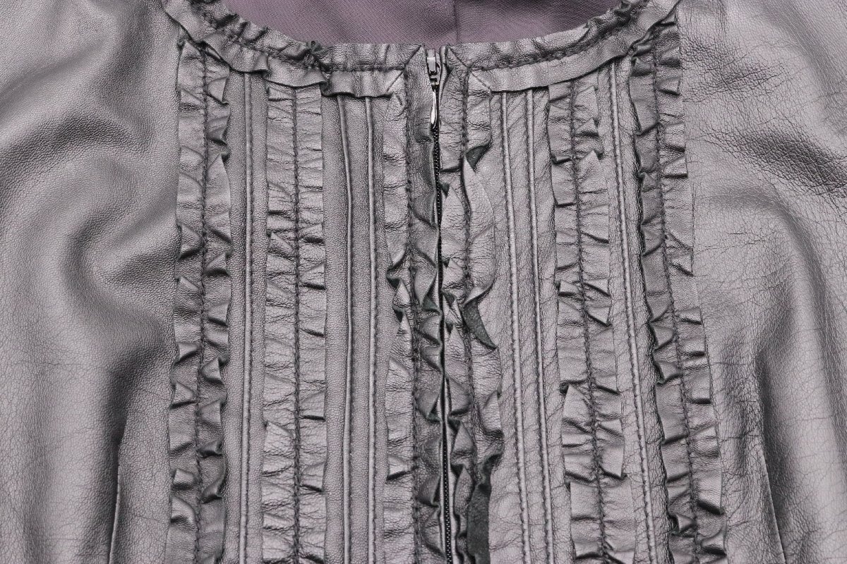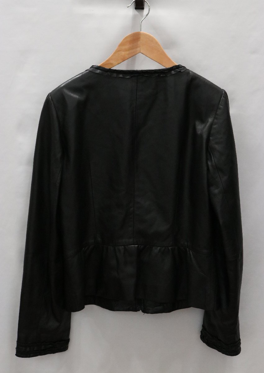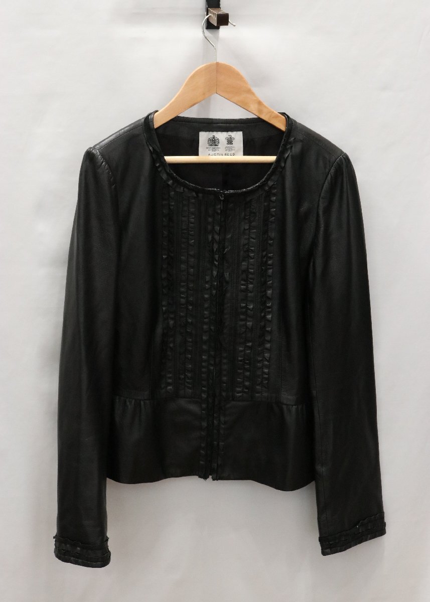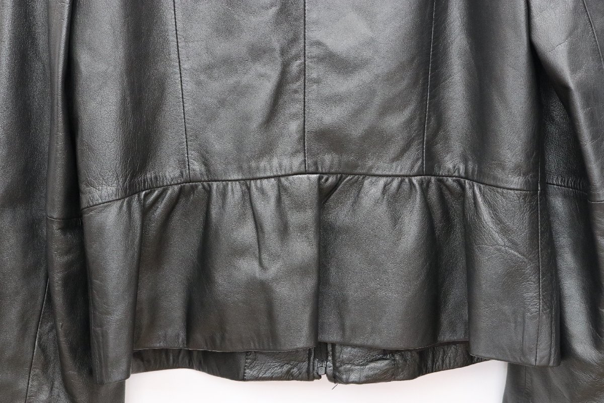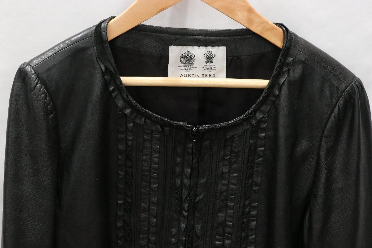 | AUSTIN REED オースチンリード レザー ジャケット ラム革 ブラック 黒 フリル サイズ40 長袖 上着 レディース | ||