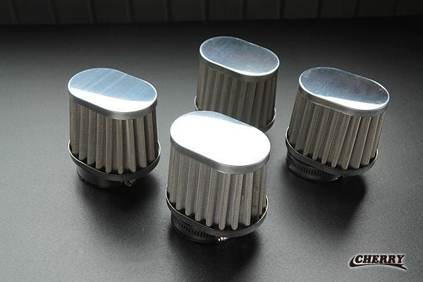 汎用のパワーフィルター。 網の部分をステンレスで作ってあります。 純正フィルターからこちらに変えることにより吸入空気量を増やすことができ、よりたくさんの混合気をエンジンへ送ることが可能になります。 差し込みの口径は50ミリでCVやCRスモールボディなどに使用でき、オーバル(楕円)形状で4気筒キャブレターにも干渉せずに取り付けることが可能です。 【寸法】 キャブ側 内径50ミリ 全長 88ミリ(ラバー抜きで68ミリ) 縦 83~76ミリ 横 65~51ミリ 【注意】 *必要に応じてキャブレターのセッティングを調整してください。 *表面にスレや小傷がある場合があります。 *取り付けのラバーがゆるい場合は接着剤などで固定してください。 *メッシュとバンド以外はスチールです。 |