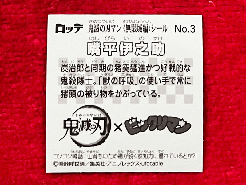 | アイテム | 嘴平伊之助 3 ビックリマン シール |