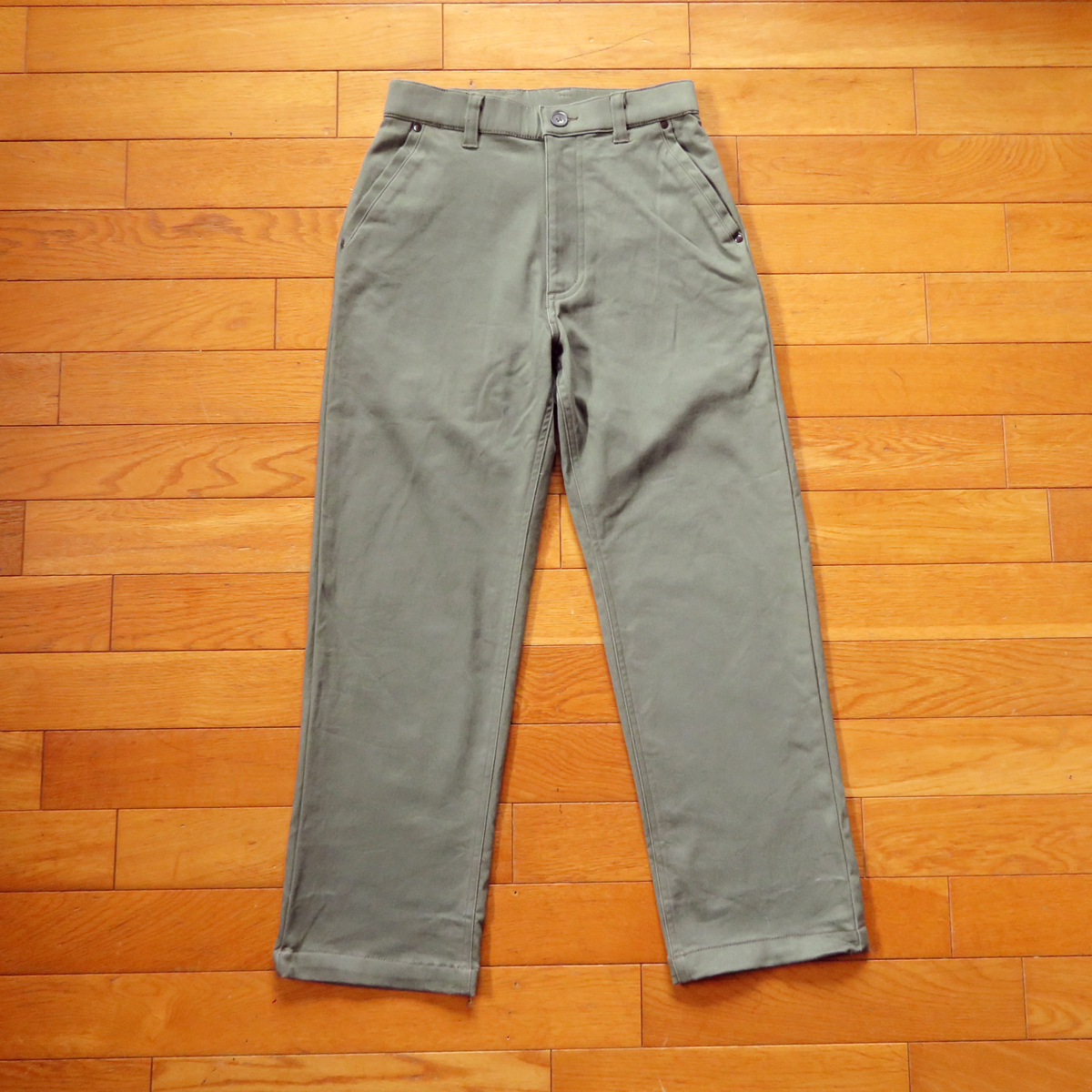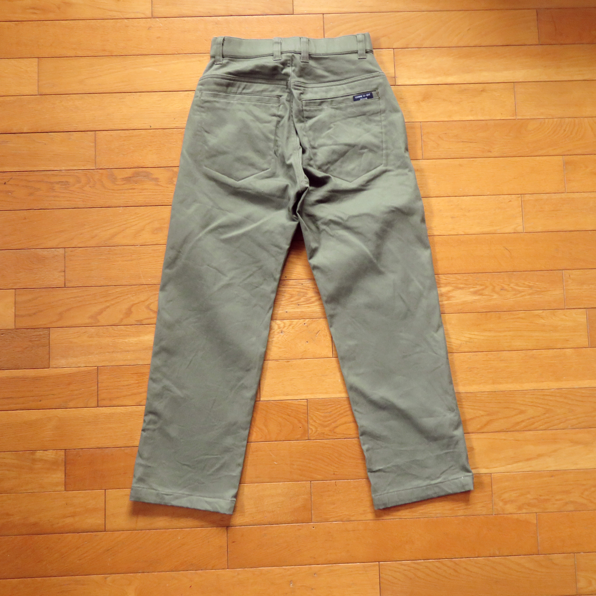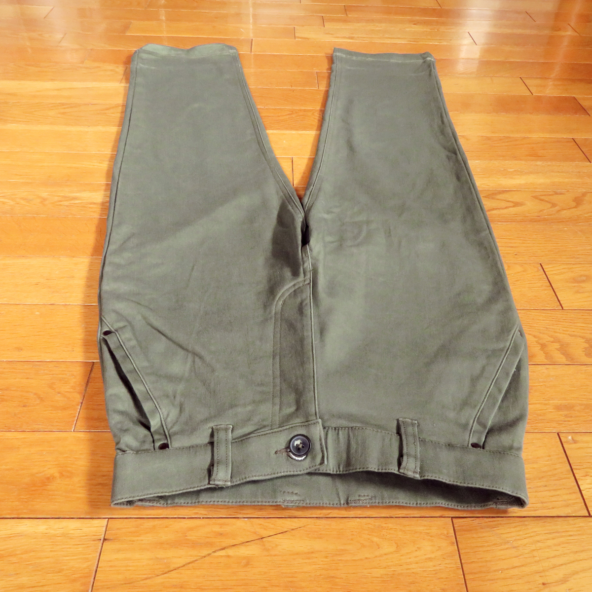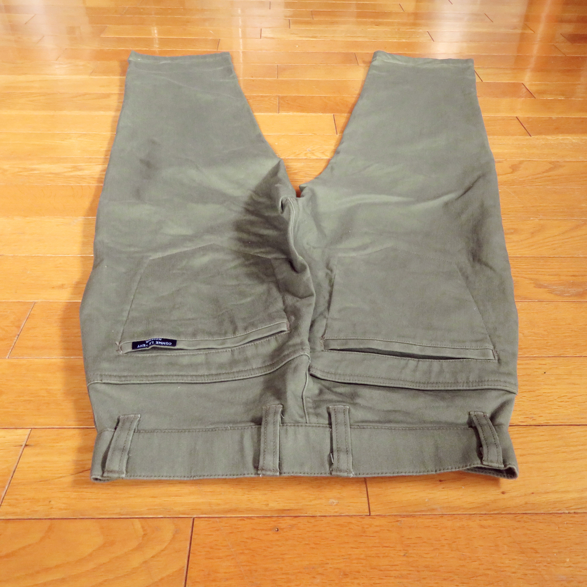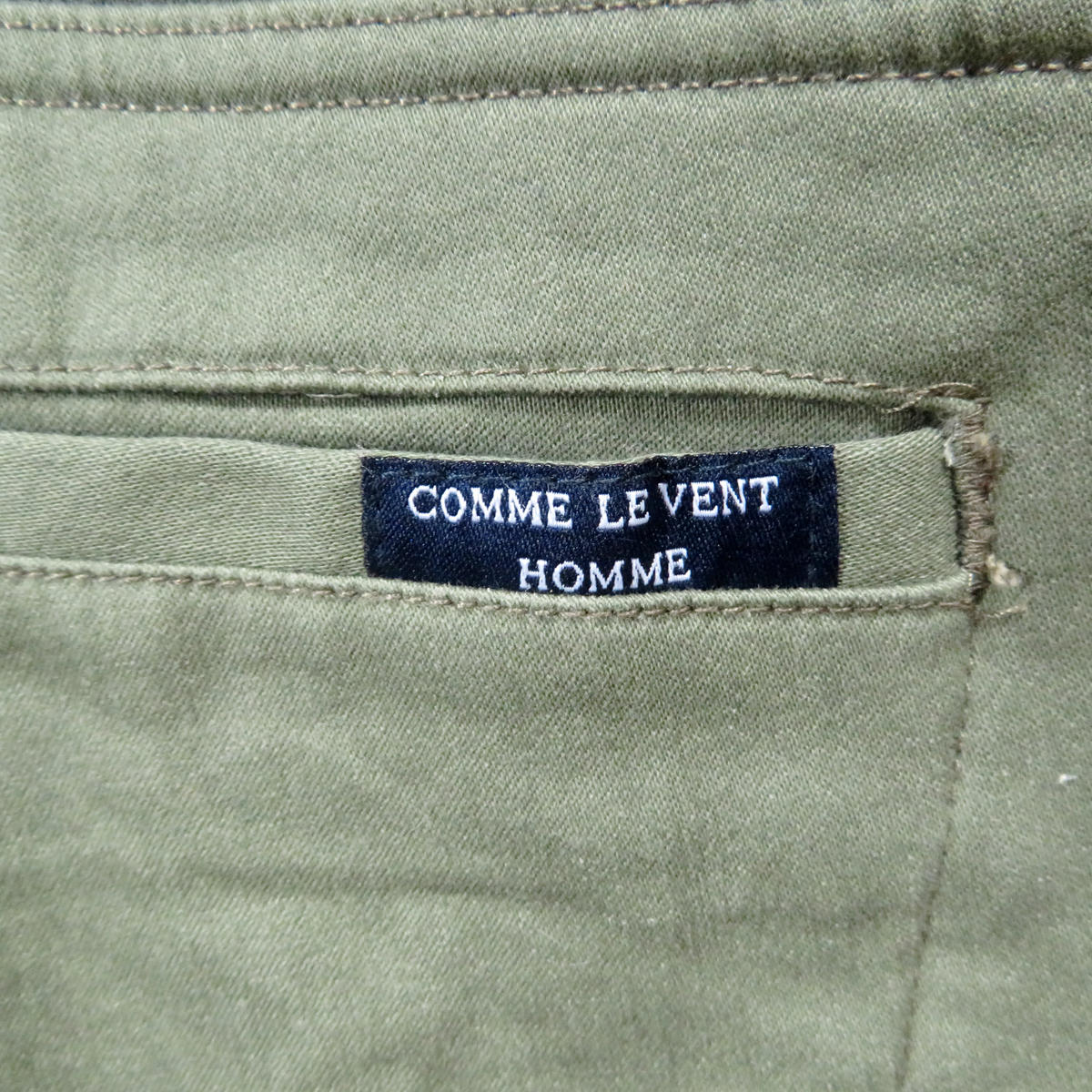 COMME LE VENT HOMMEのストレッチがうれしい快適らくらくチノパンです。 ストレッチがかなり効いていて、すごく履きやすくなっているチノパンツです。 生地も柔らかめで、裏側の生地は、微起毛という感じの肌触りもとっても良い感じなっています。 シルエットな普遍的な、チノパンシルエットですごく使いやすくなっています。 お色は、カーキ色です。 すごく便利なアイテムです。いかがでしょうか^^ 【コンディション】 多少の使用感はありますが、着用は少なめ、着用に支障があるような大きなダメージ、汚れなどは有りません。 まぁぁきれいだと思います。十分着用していただけます。 ------------------------------------------- 【表記】サイズ S 【実寸】 平置き ウエスト 32cm×2(64cm)(平置き後ろ直線測定) 股上 27.5cm 股下 63cm 裾幅 18.5cm わたり幅 25cm(付け根から10cm下を水平に計測) 前後程度になります。※平置き、素人採寸になりますので、多少の誤差はお許し下さい。 ------------------------------------------- 【材質】 綿64% ポリエステル 34% ポリウレタン2% 【色】 カーキ 【USED品】 ------------------------------------------- ◆ 他にもいろいろデニムなど出品していますので、よかったら見ていってください。 ◆ もちろん同梱もできますので、お気軽にご質問ください。 ◆ 気持ちの良いお取引を目指していますので、ご質問は事前にお気軽にどうぞ。 終了直前だとお答えできない場合があります。どうぞよろしくお願い致します。 | ||||